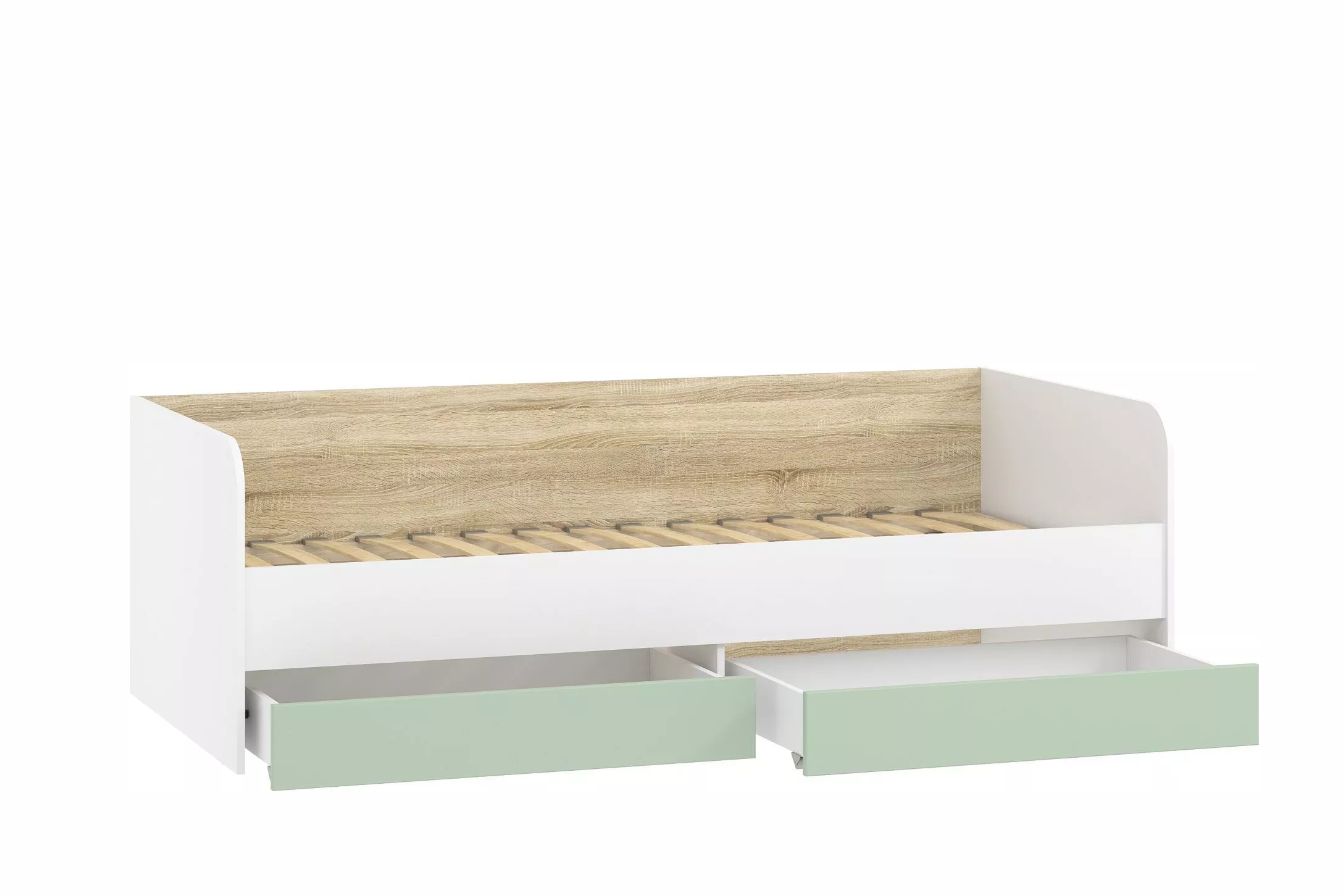Одноместная кровать Банни НМ 041.38 идеально подходит для оформления уютного спального уголка в детской. Скандинавский стиль коллекции «Банни» идеально подходит для интерьера детской комнаты мальчика и девочки. Несмотря на распространенное мнение, что в комнате ребенка должно быть много цветов, сканди стиль — исключение. В основе лежит несколько базовых оттенков, а яркий цвет добавляется акцентно.Вместительные бельевые ящики удобны для хранения постельных принадлежностей. Боковая спинка предотвращает истирание настенного покрытия. Кровать полностью безопасна для ребенка: у модели нет острых углов и накладных ручек на фасадах ящиков.