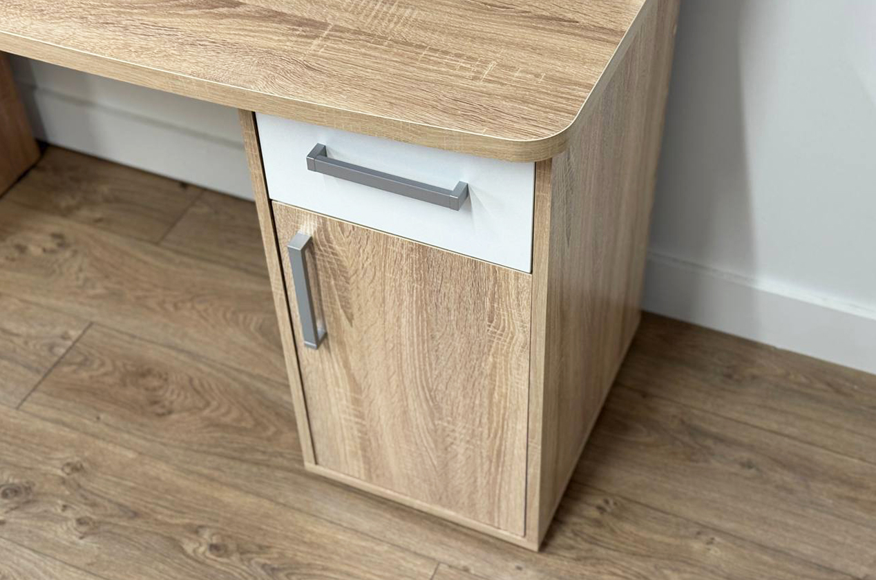 Прямой компьютерный стол «Лайт-1»: компактное и функциональное решение для вашего рабочего пространства. Сочетание лаконичного дизайна и простоты делает его идеальным выбором для организации рабочего места. Стол выполнен из качественного ЛДСП цвета «дуб сонома» с элегантными белыми элементами. Особенностью дизайна являются радиусные элементы и утолщенная столешница (25 мм). Для расширения функциональности рекомендуется дополнить стол надстройкой и стеллажом из серии «Лайт-1».Габариты: