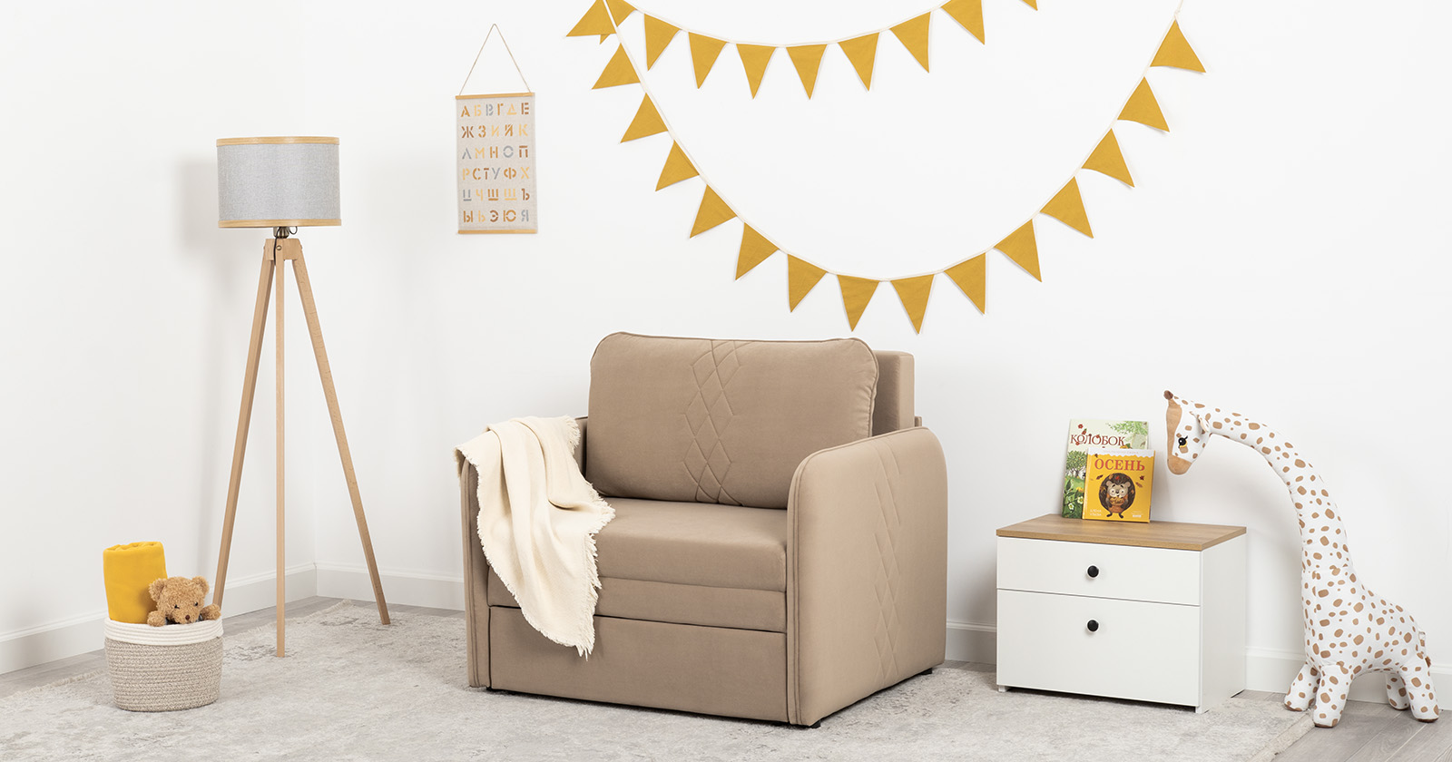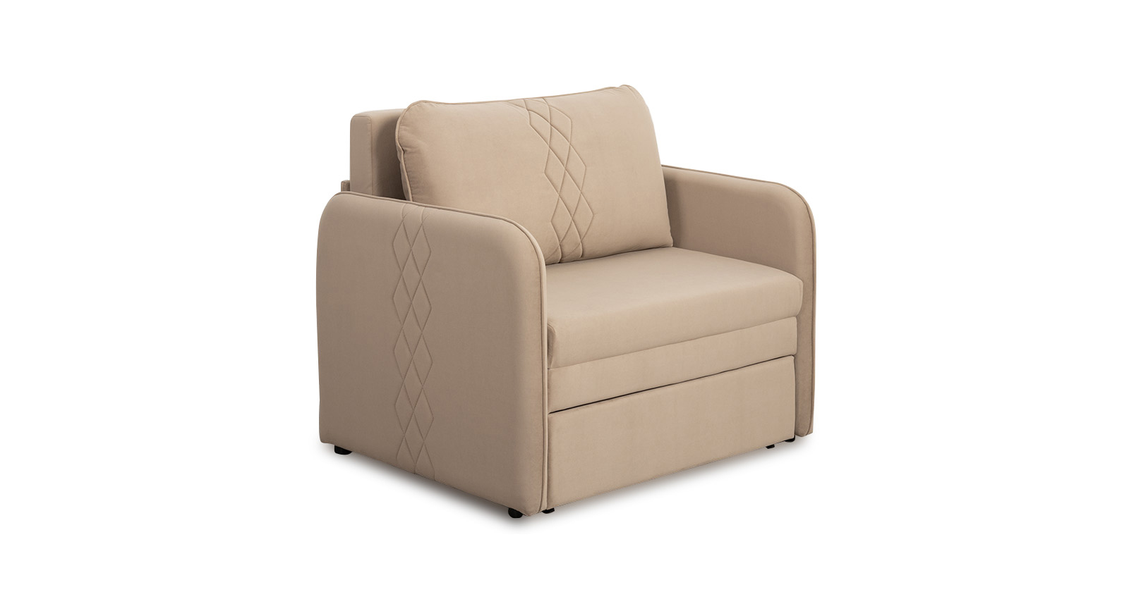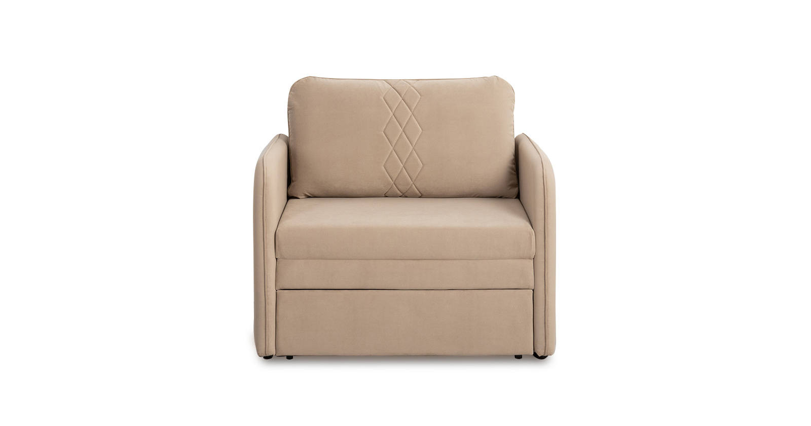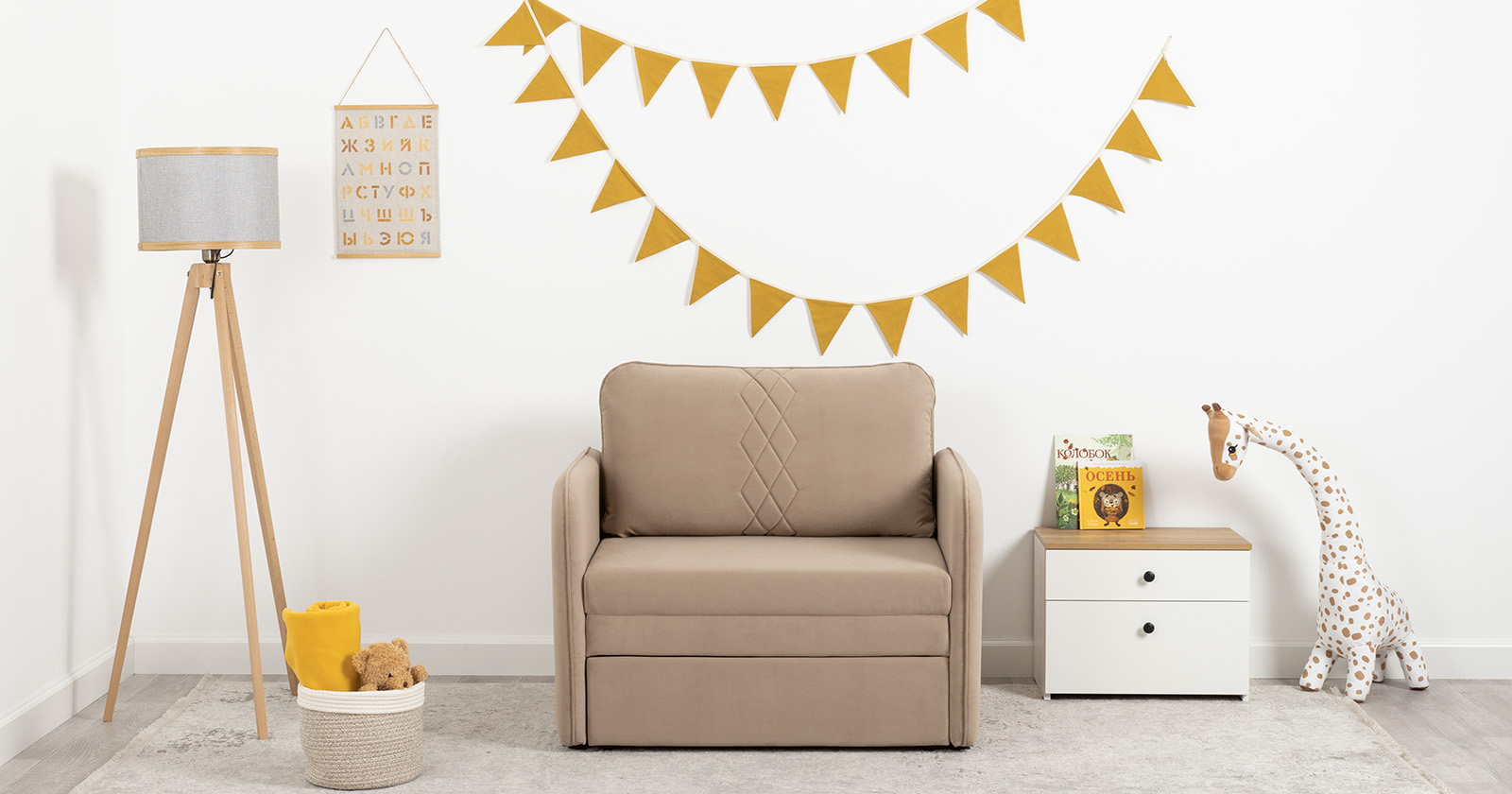 Стильный компактный диван для детской и гостиной. При своих скромных размерах он трансформируется в полноценное спальное место для детей и подростков. Лаконичный дизайн в виде декоративной стежки подчеркивает фактуру велюра, а небольшие размеры позволят разместить его в любом пространстве.Габариты: