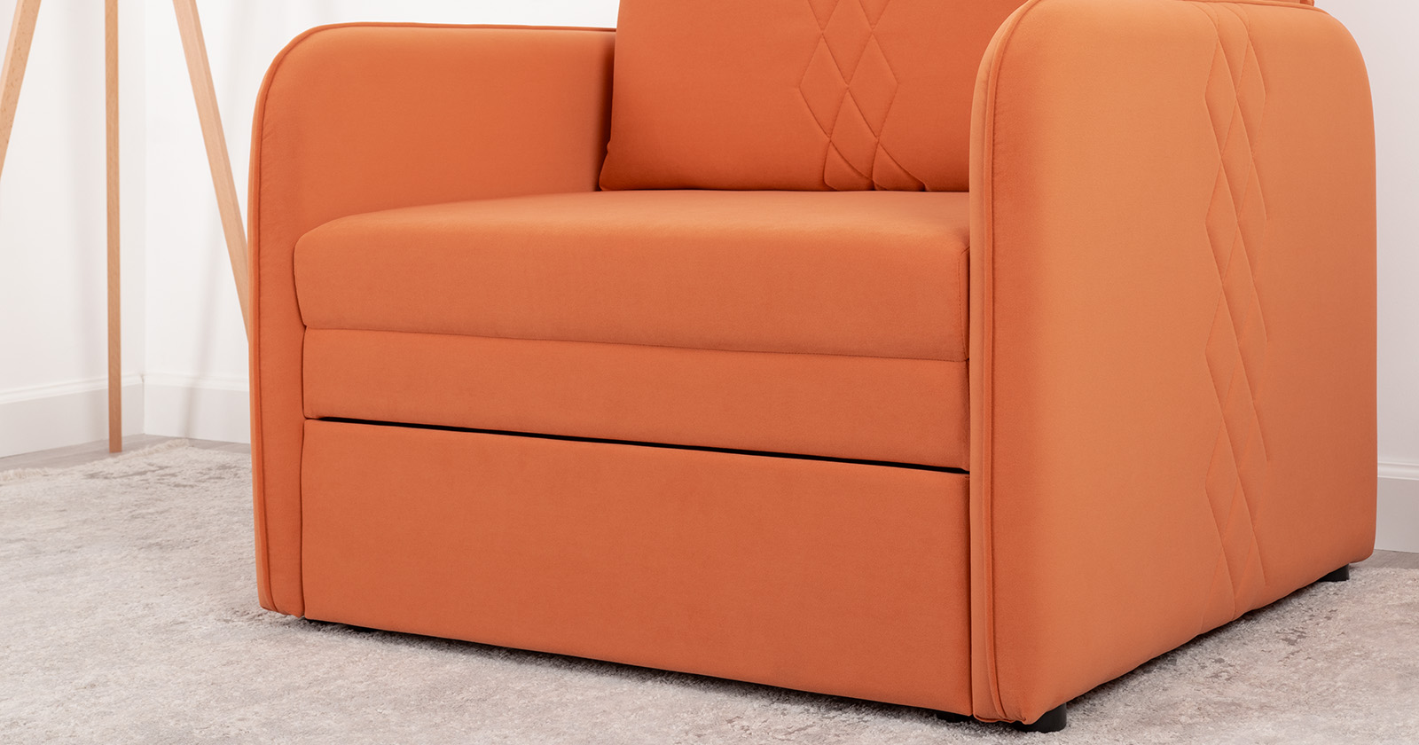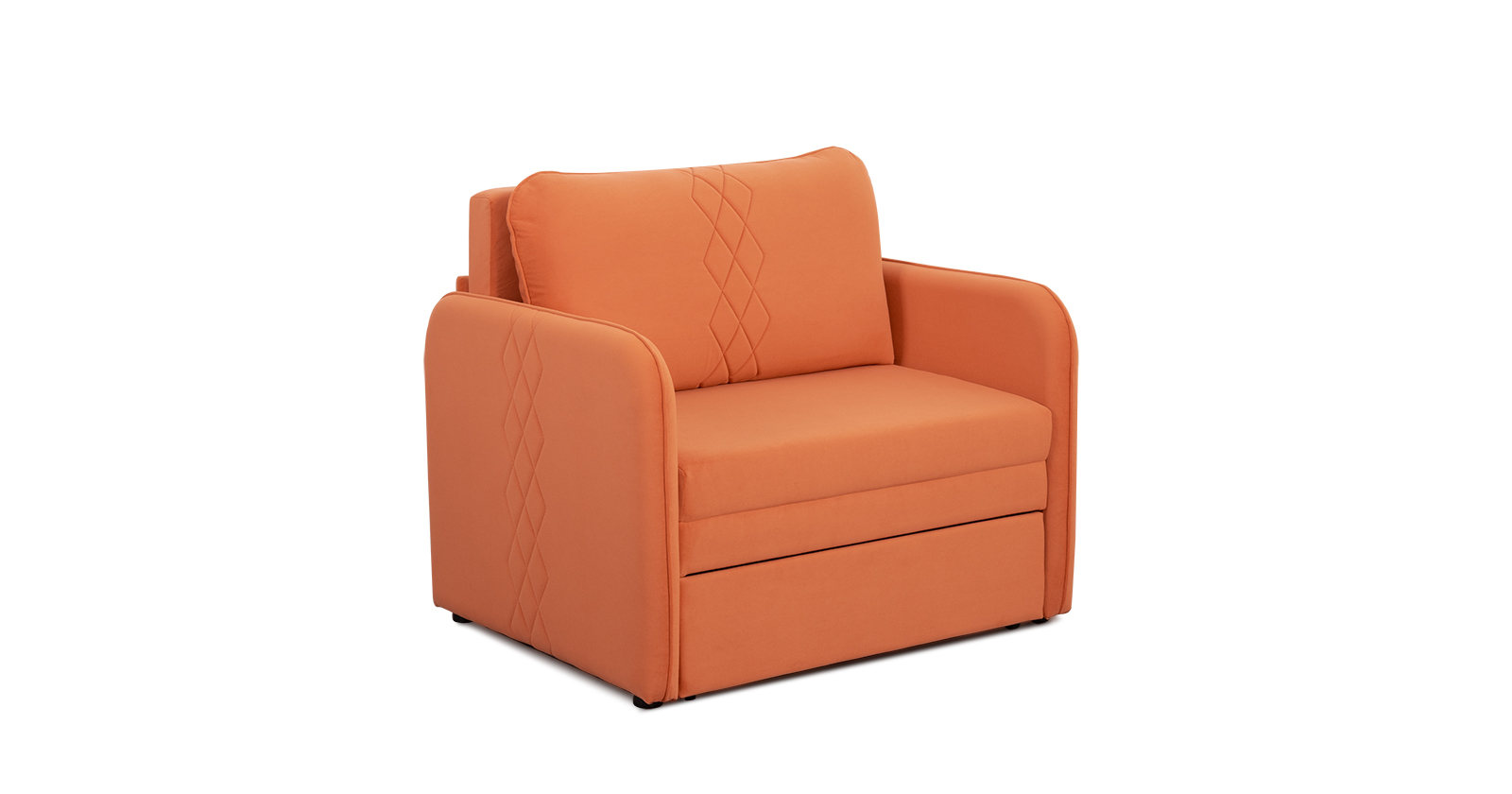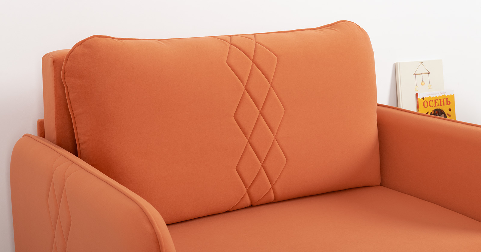 Стильный компактный диван для детской и гостиной. При своих скромных размерах он трансформируется в полноценное спальное место для детей и подростков. Лаконичный дизайн в виде декоративной стежки подчеркивает фактуру велюра, а небольшие размеры позволят разместить его в любом пространстве.Габариты: