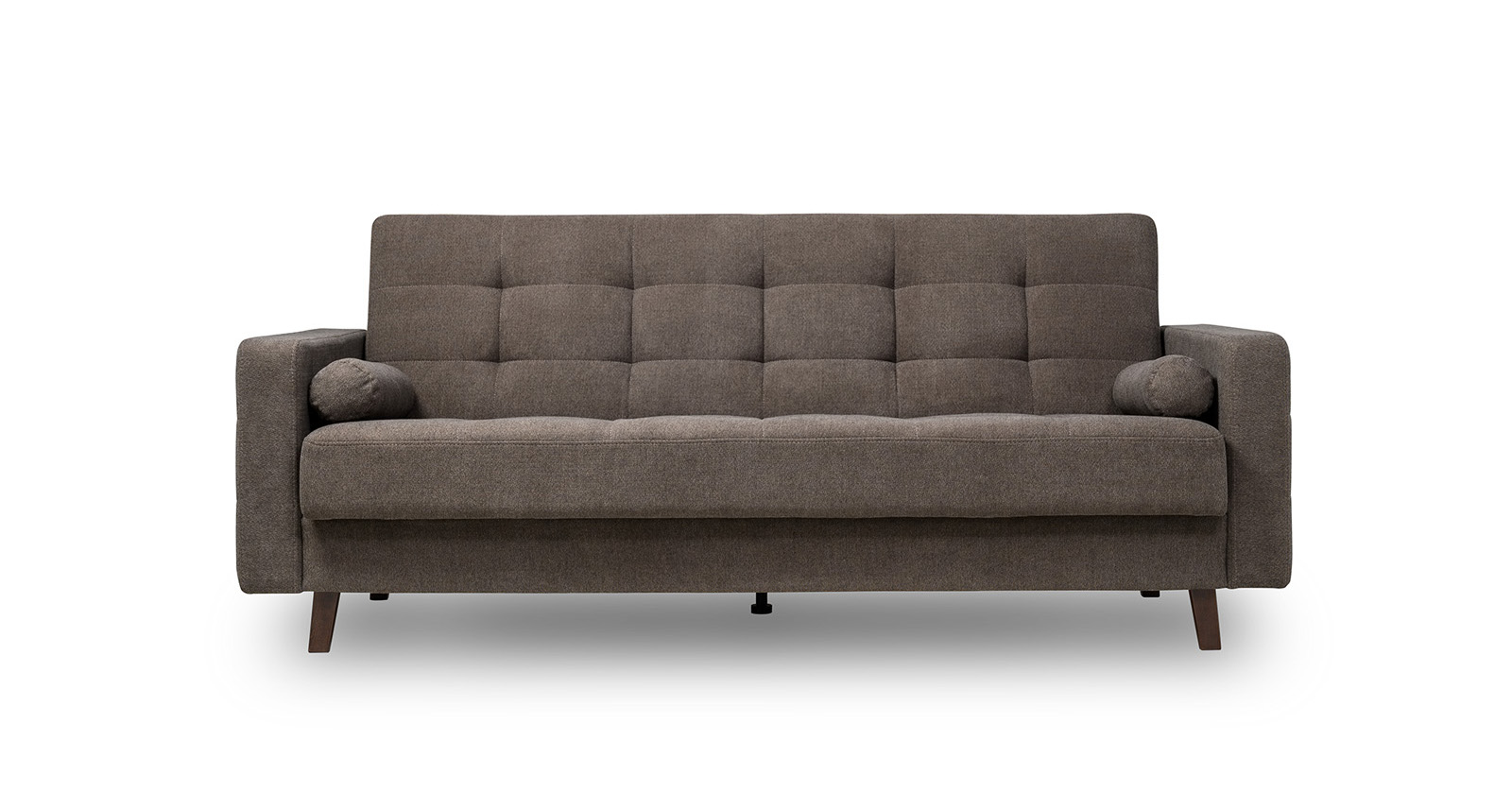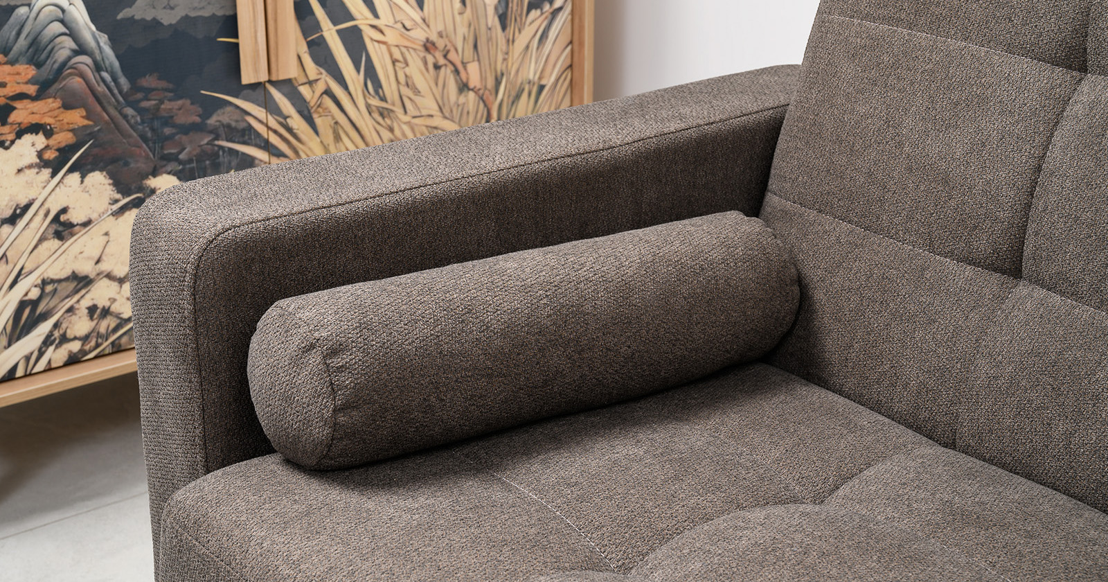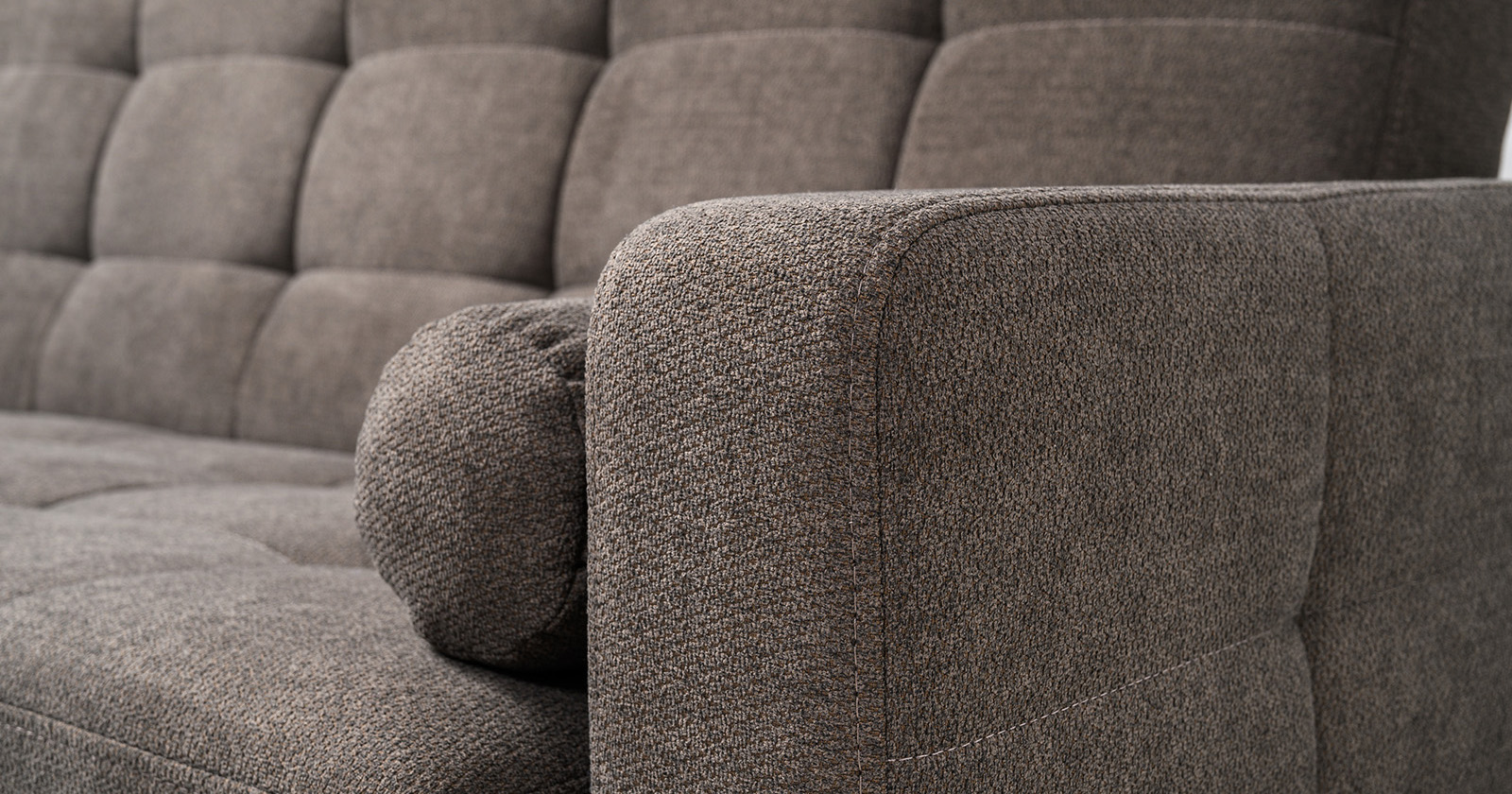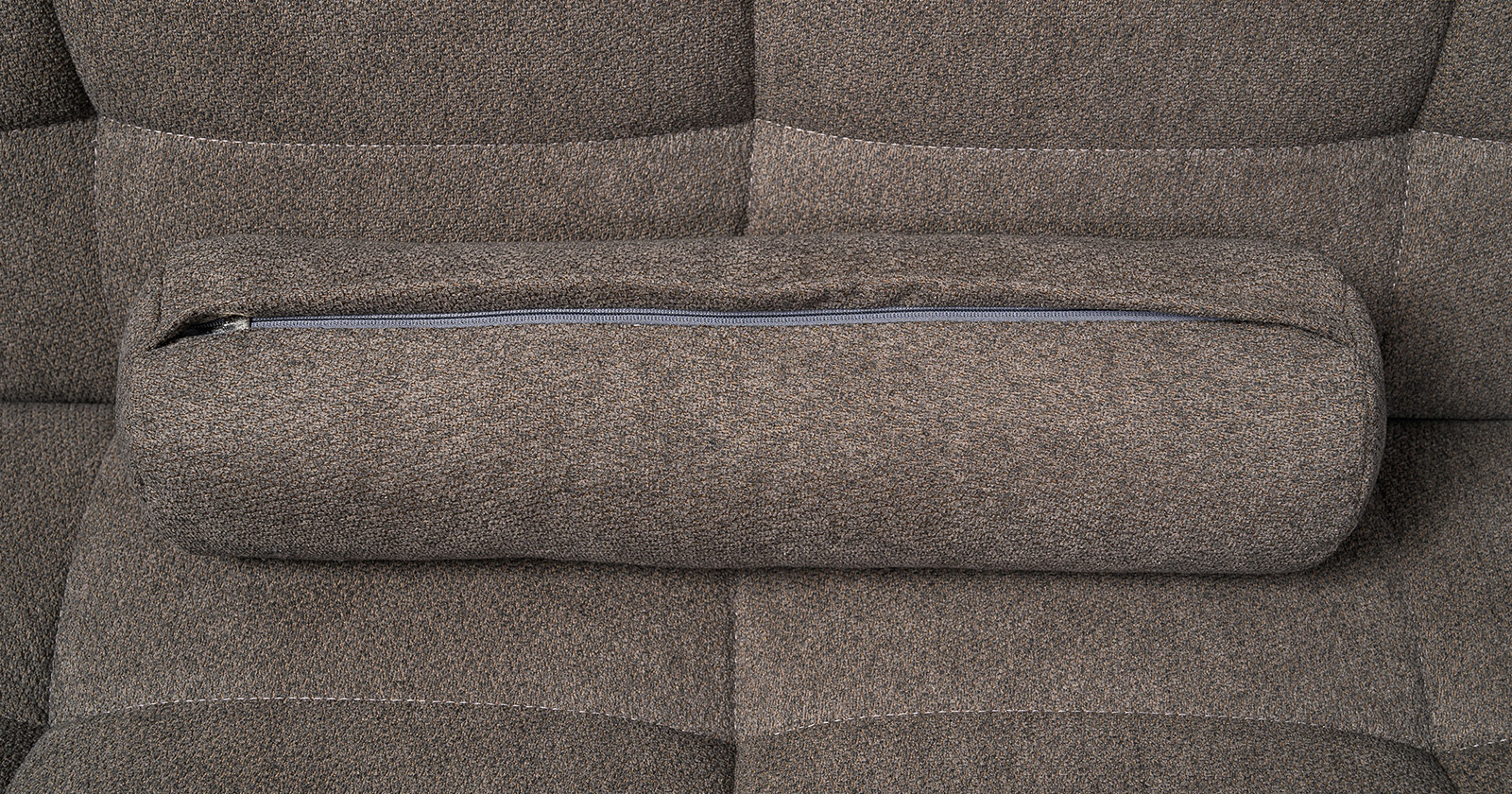 Прямоугольная стежка по спинке, посадочному месту и подлокотниках, круглые подушки-валики