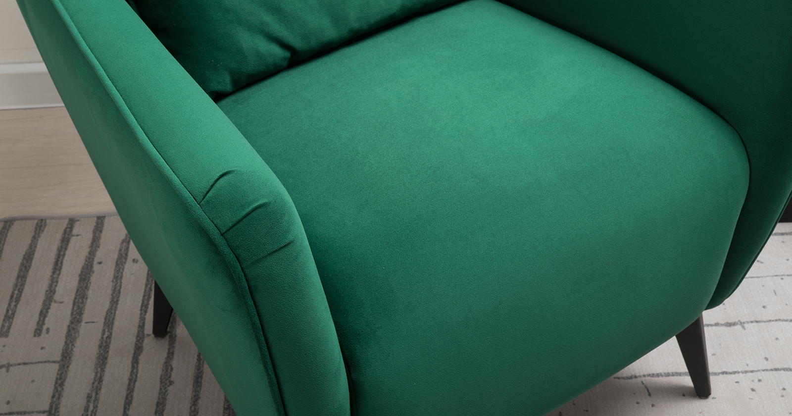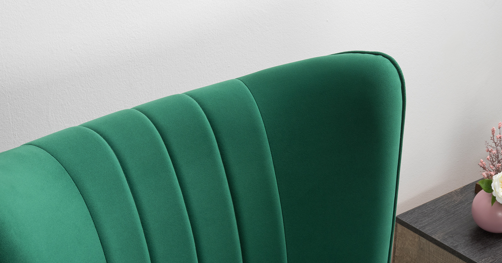 Вертикальная объемная стежка в средней части спинки; кант на спинке, подлокотниках и декоративной подушке