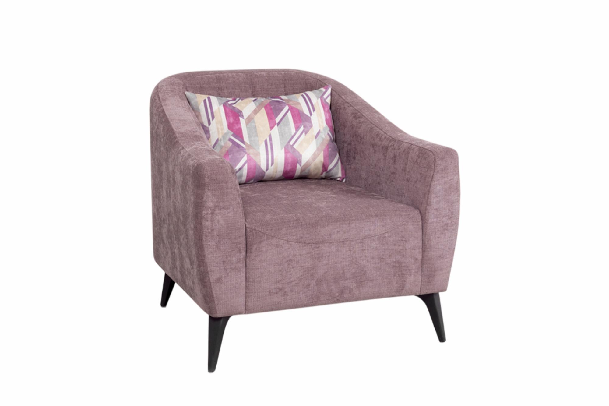 Компактное и удобное кресло на высоких металлических опорах – ваш яркий акцент в интерьере – или дополнение к дивану-книжке Наоми. Широкие подлокотники и мягкая приспинная подушка позволяют с комфортом отдохнуть в кресле с чашечкой чая и книгой или отвлечься от забот за просмотром фильма.Габариты: