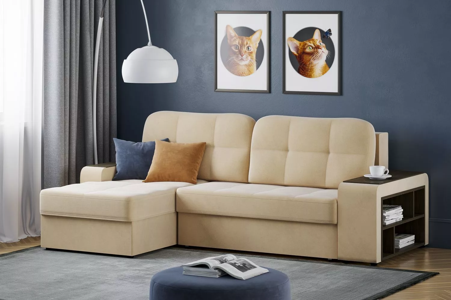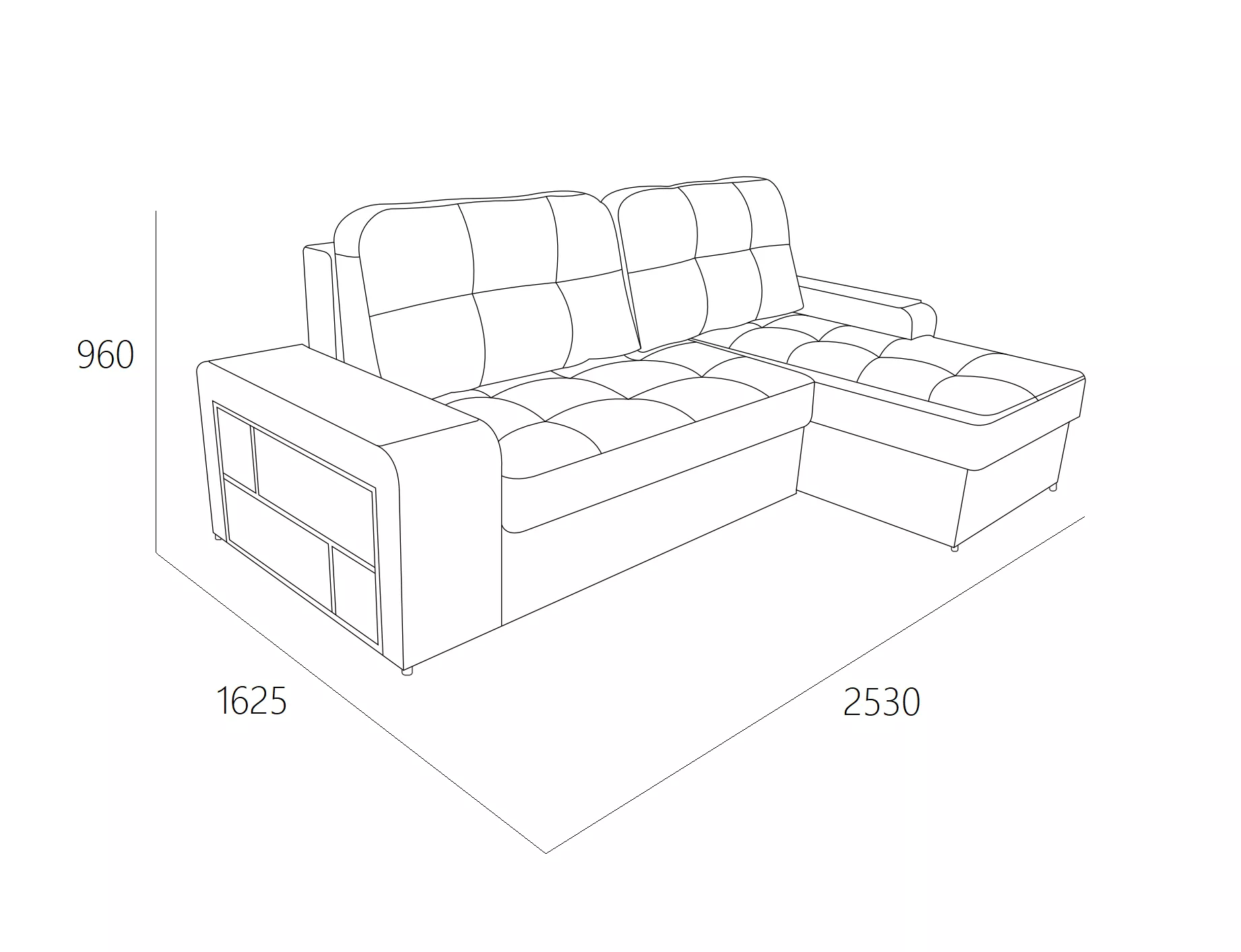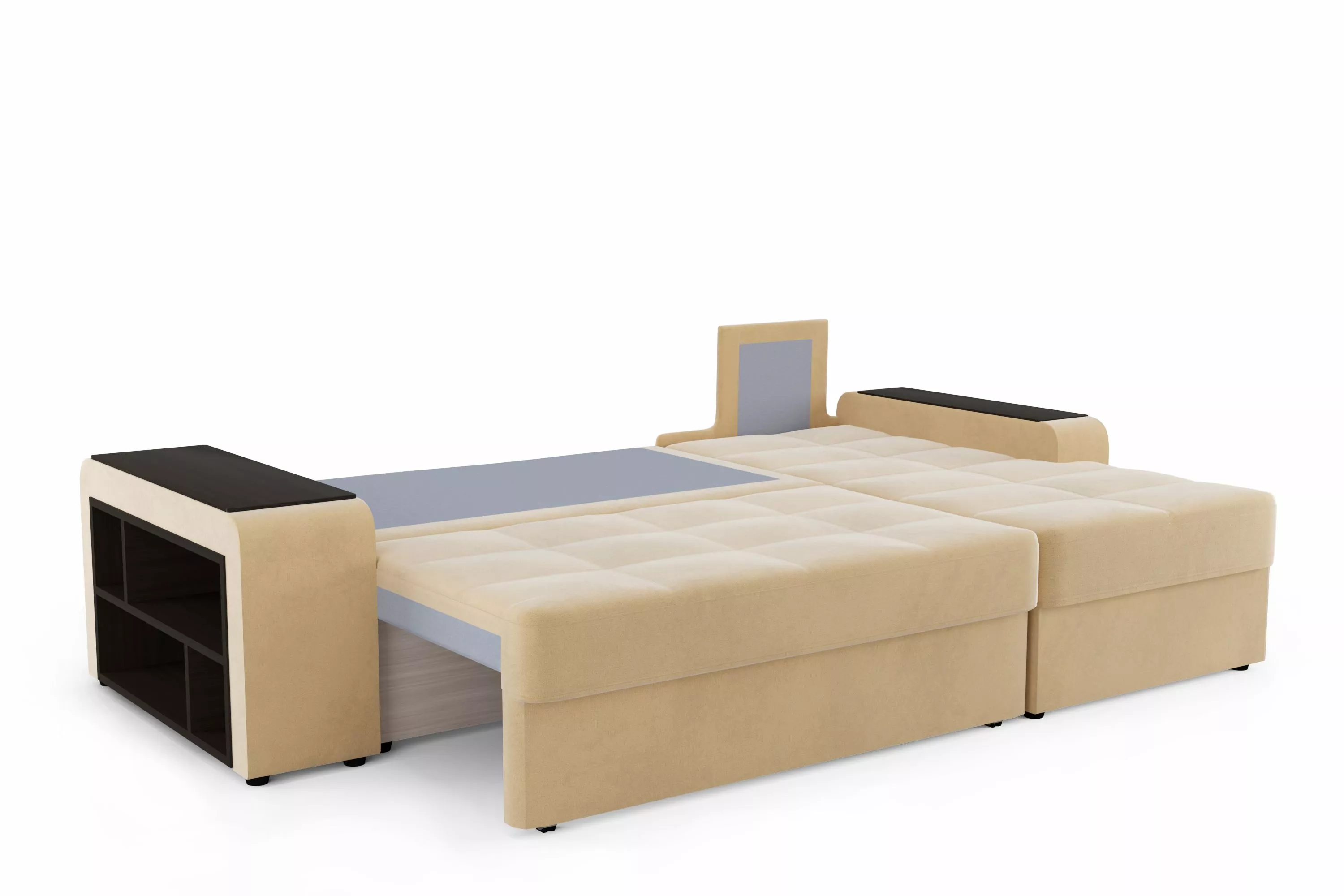 Диван-кровать угловой Дубай - стильный и комфортный предмет для зоны отдыха в гостиной комнате. Модель выделяется оригинальным дизайном и качественным изготовлением. Диван Дубай имеет удобный механизм складывания "Еврокнижка" - сиденье выдвигается, а спинка опускается вперед, образуя ровное место для сна.Такой диван не составит труда складывать и раскладывать каждый вечер и утро. Боковины оснащены декоративными накладками, которые обеспечивают дополнительную рабочую поверхность, а в одну из боковин интегрирована полка для хранения книг, журналов, гаджетов.