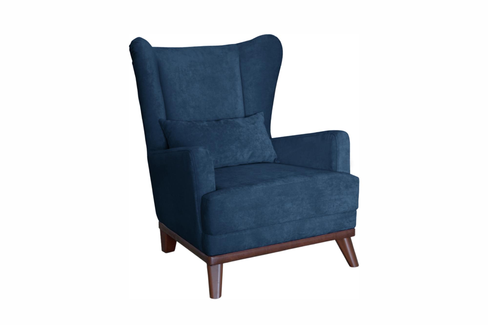 Высокая спинка с наклоном и мягкие подлокотники обеспечивают удобную посадку, дополнительный комфорт создает декоративная подушка. Царга кресла обтянута искусственной кожей в цвет опорам.Габариты: