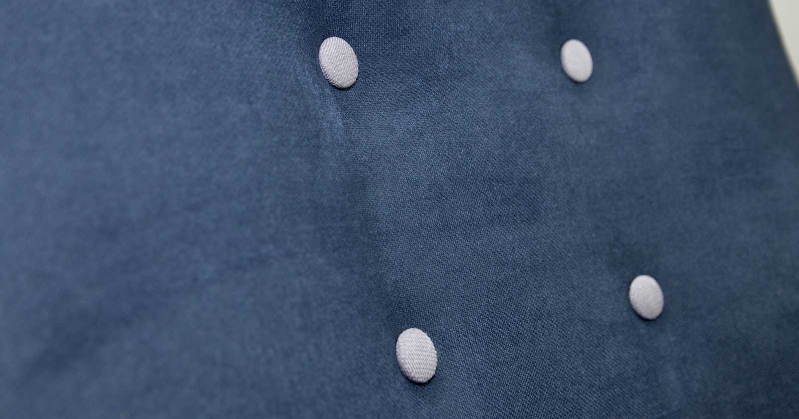 Декоративный кант на кресле, защипы на декоративной подушке, пуговицы на спинке