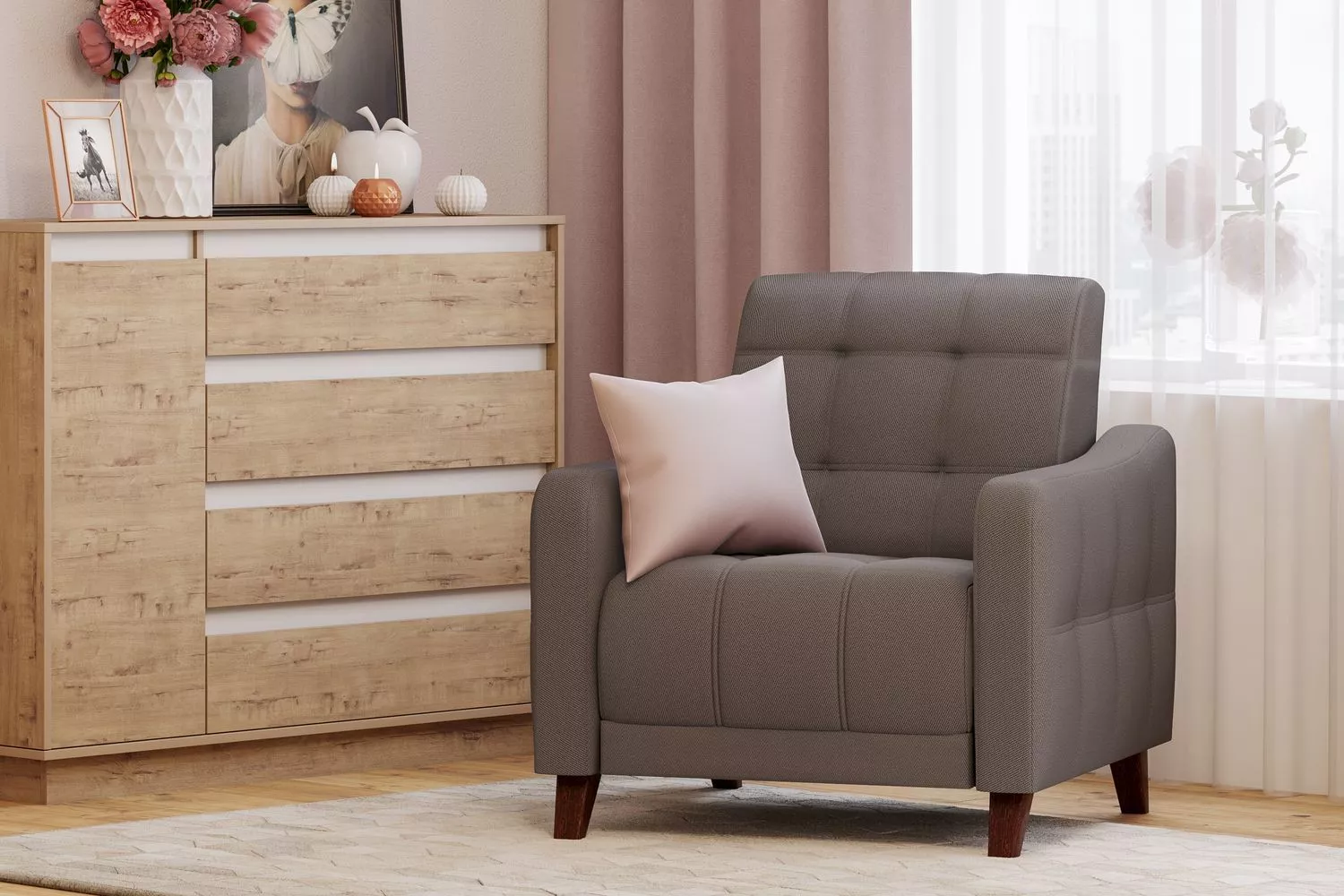 Мягкое кресло — это тот элемент мебели, который востребован всегда, ведь он идеально подходит для чтения книги, отдыха после трудного дня, размещения гостей, просмотра телевизора или чаепития. Являясь центром внимания, кресло в доме должно быть максимально уютным, комфортным и качественным. Для завершения дизайна интерьера кресло «Римини» идеально сочетается с диваном этой серии.Габариты: