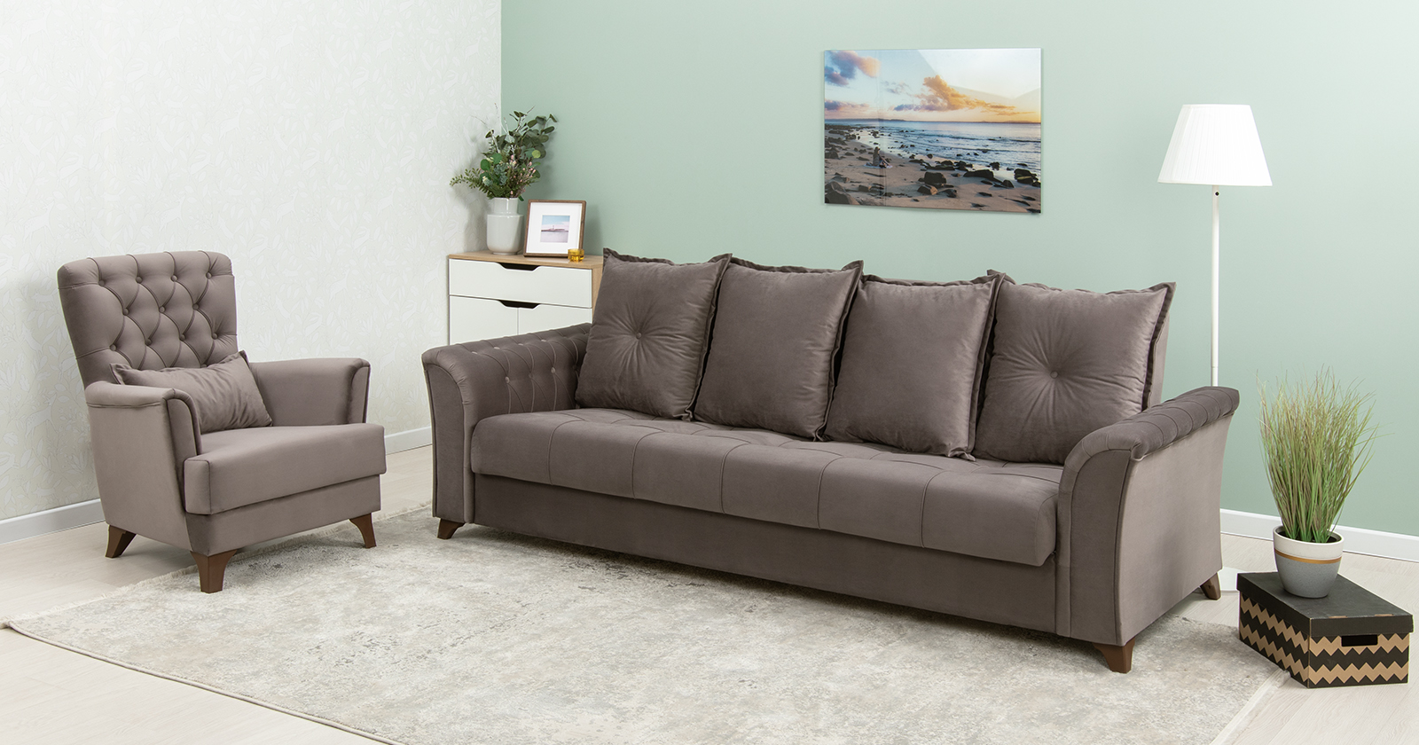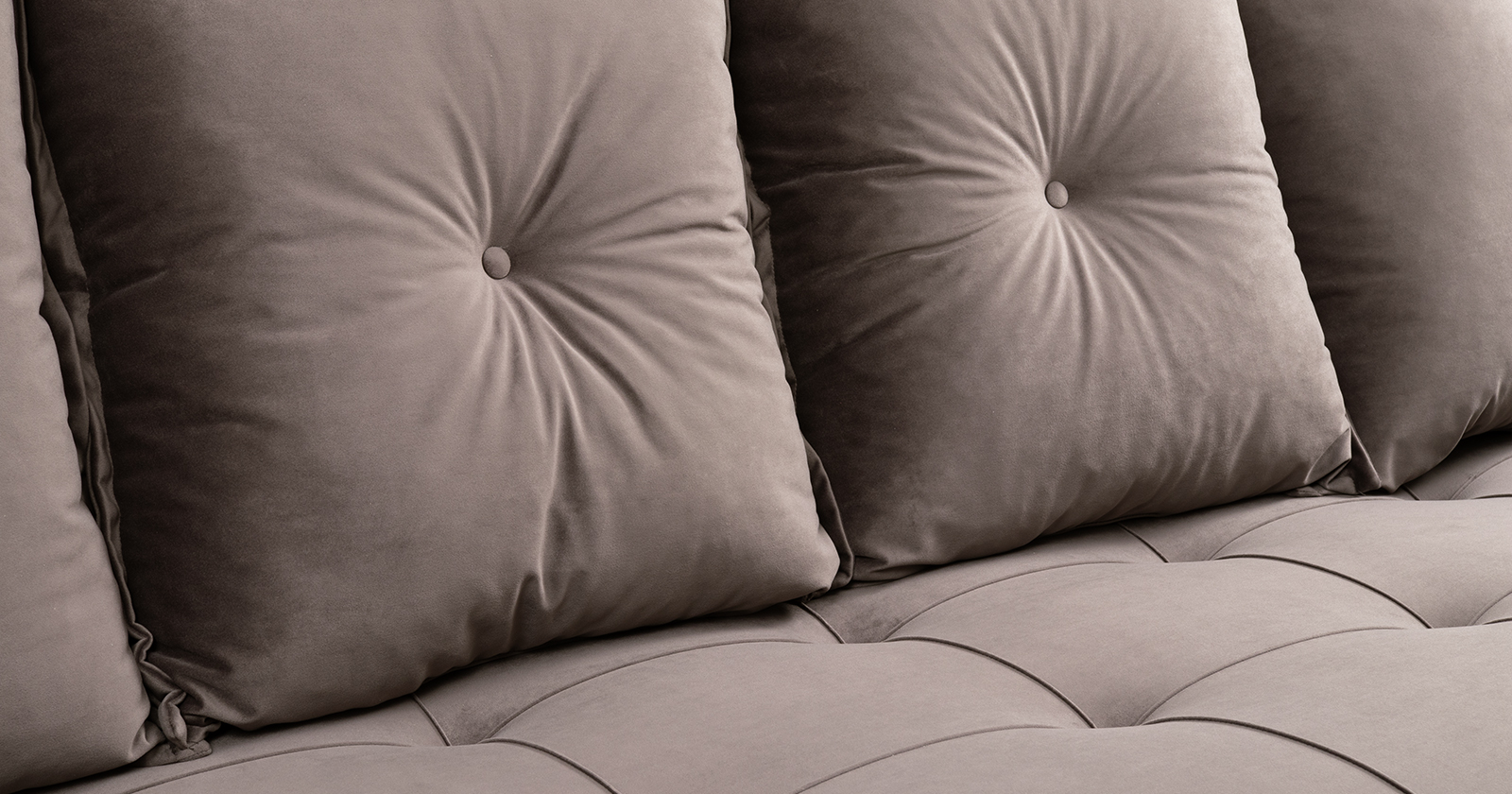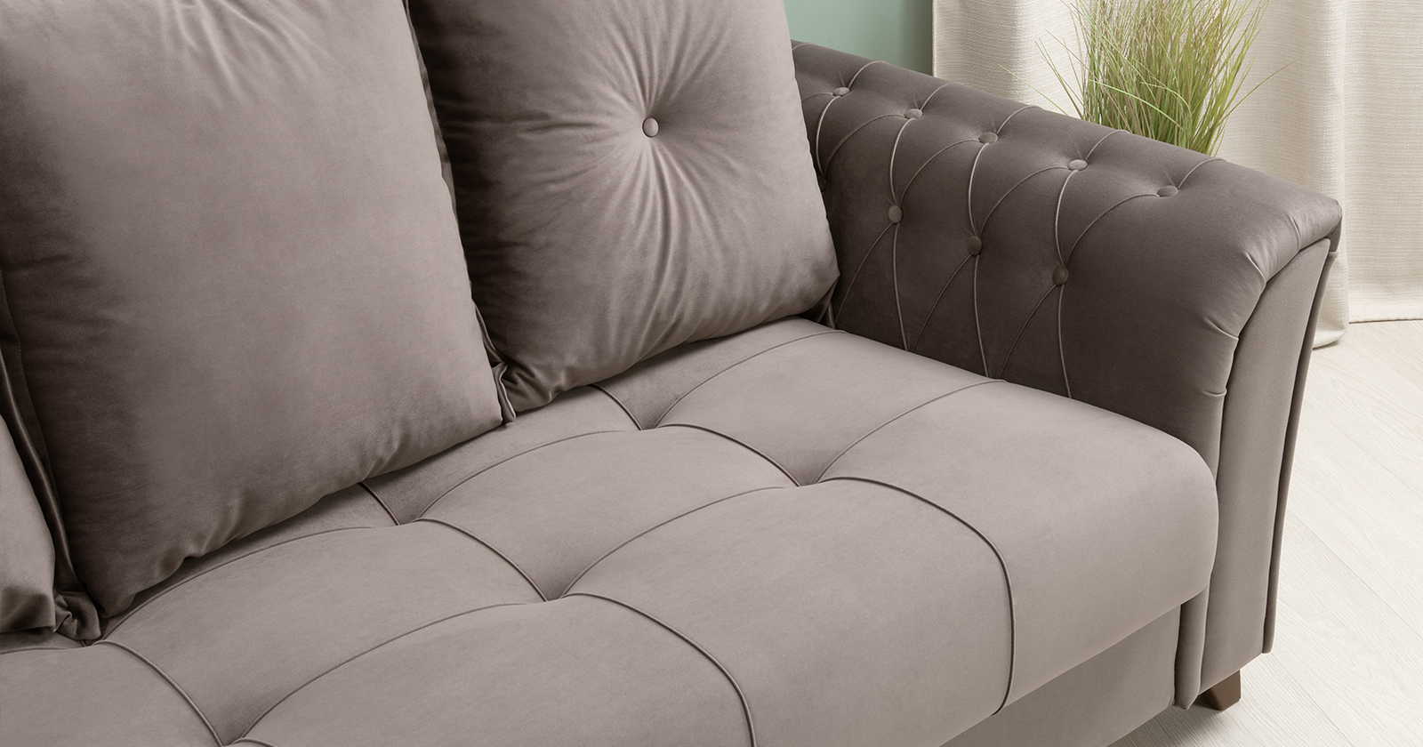 Декоративная отстрочка, защипы и утяжки на сиденье; защипы и утяжки с пуговицами на подлокотниках; утяжки с пуговицами на приспинных подушках