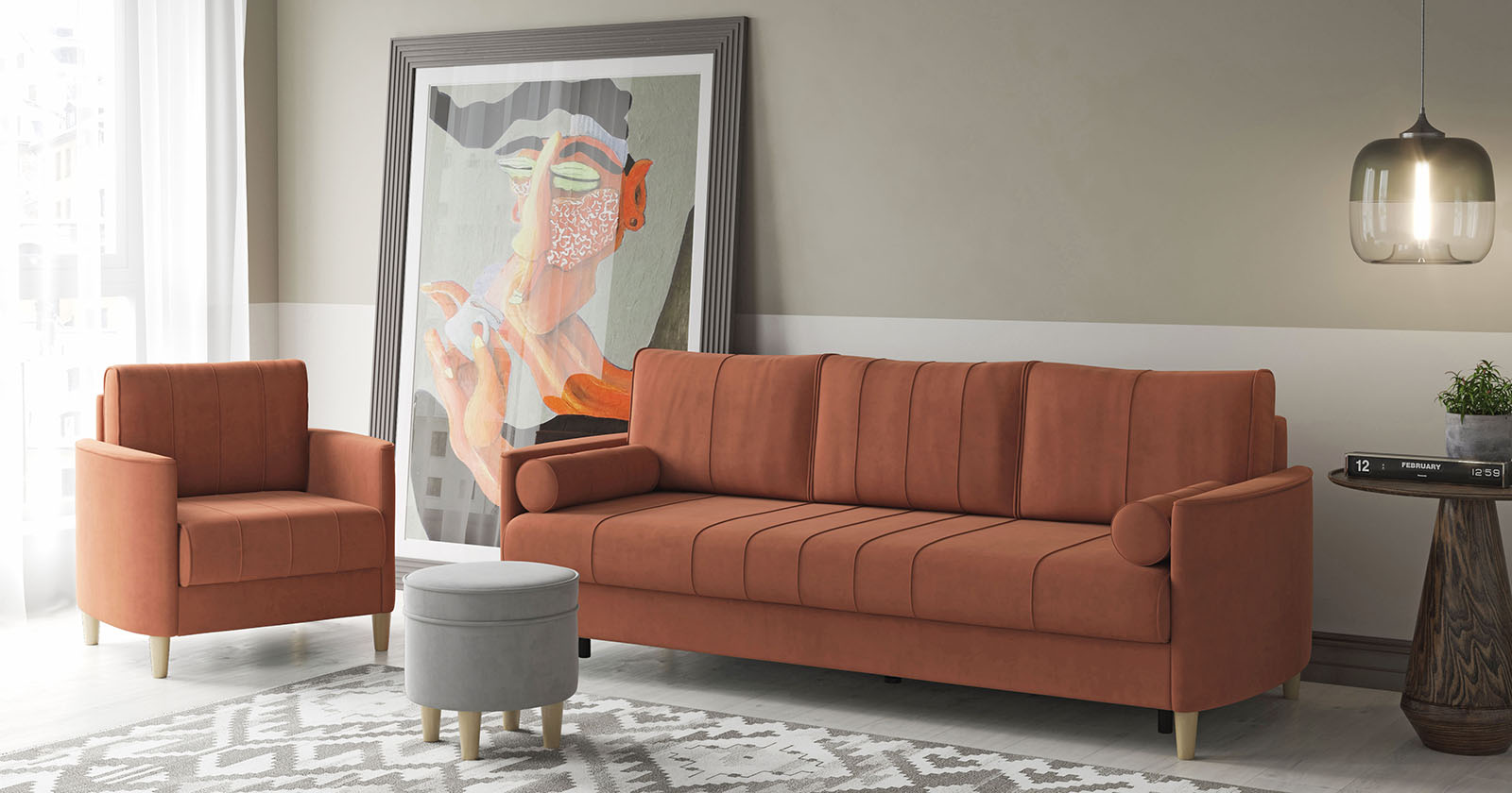 Кант на торцах приспинных подушек, сиденья и подлокотников. Защипы на сиденье и приспинных подушках.