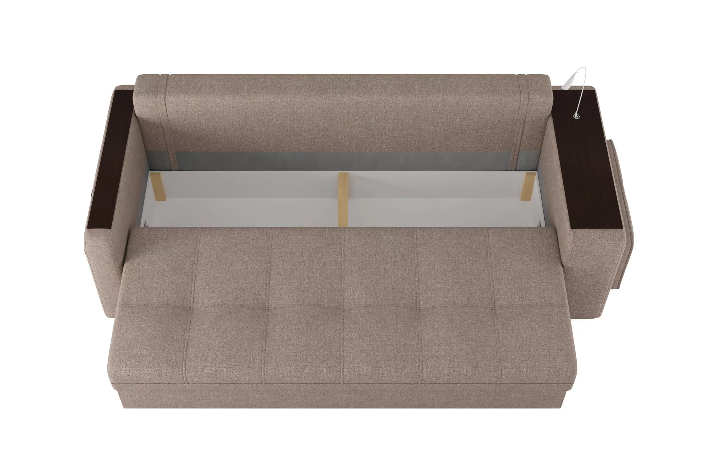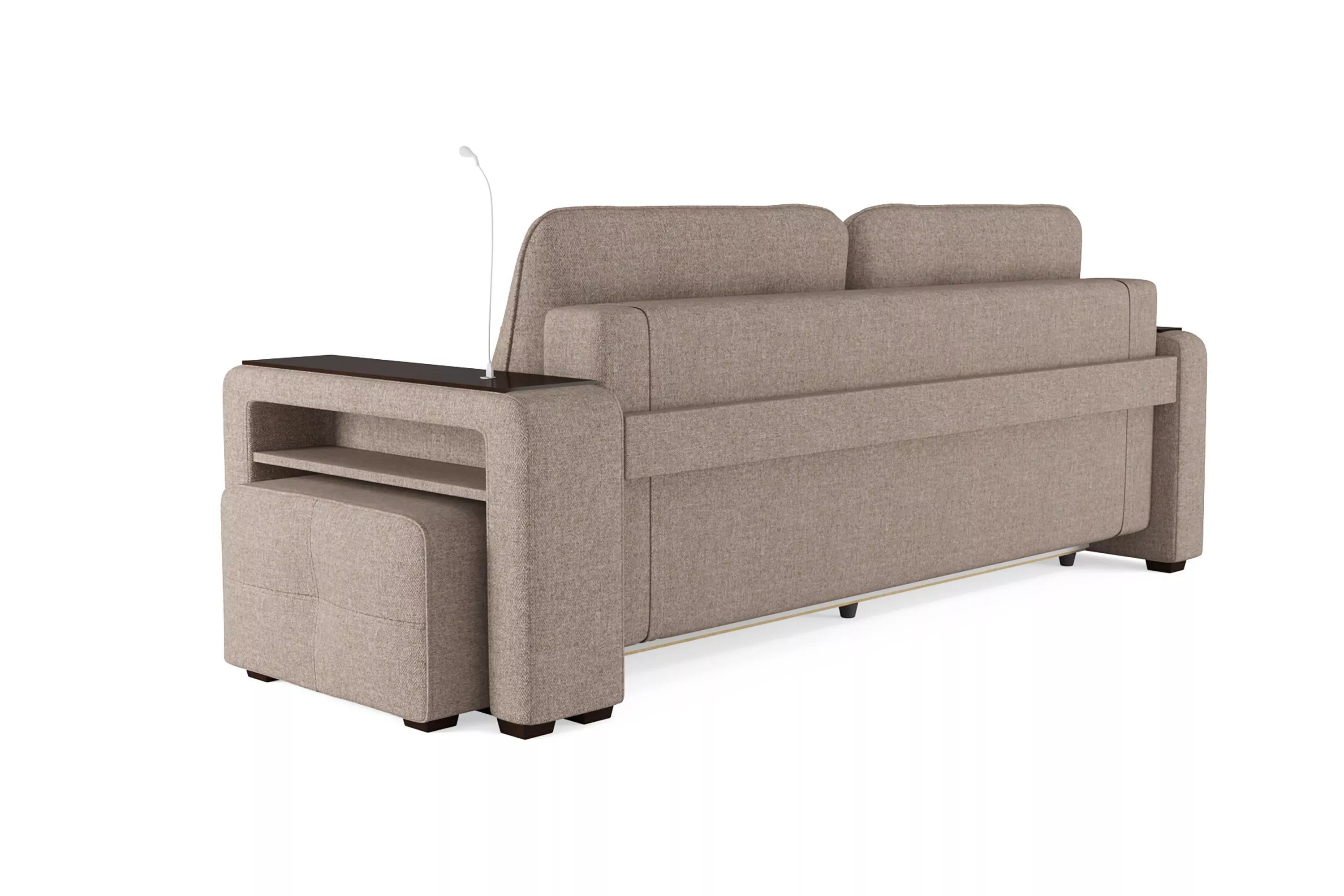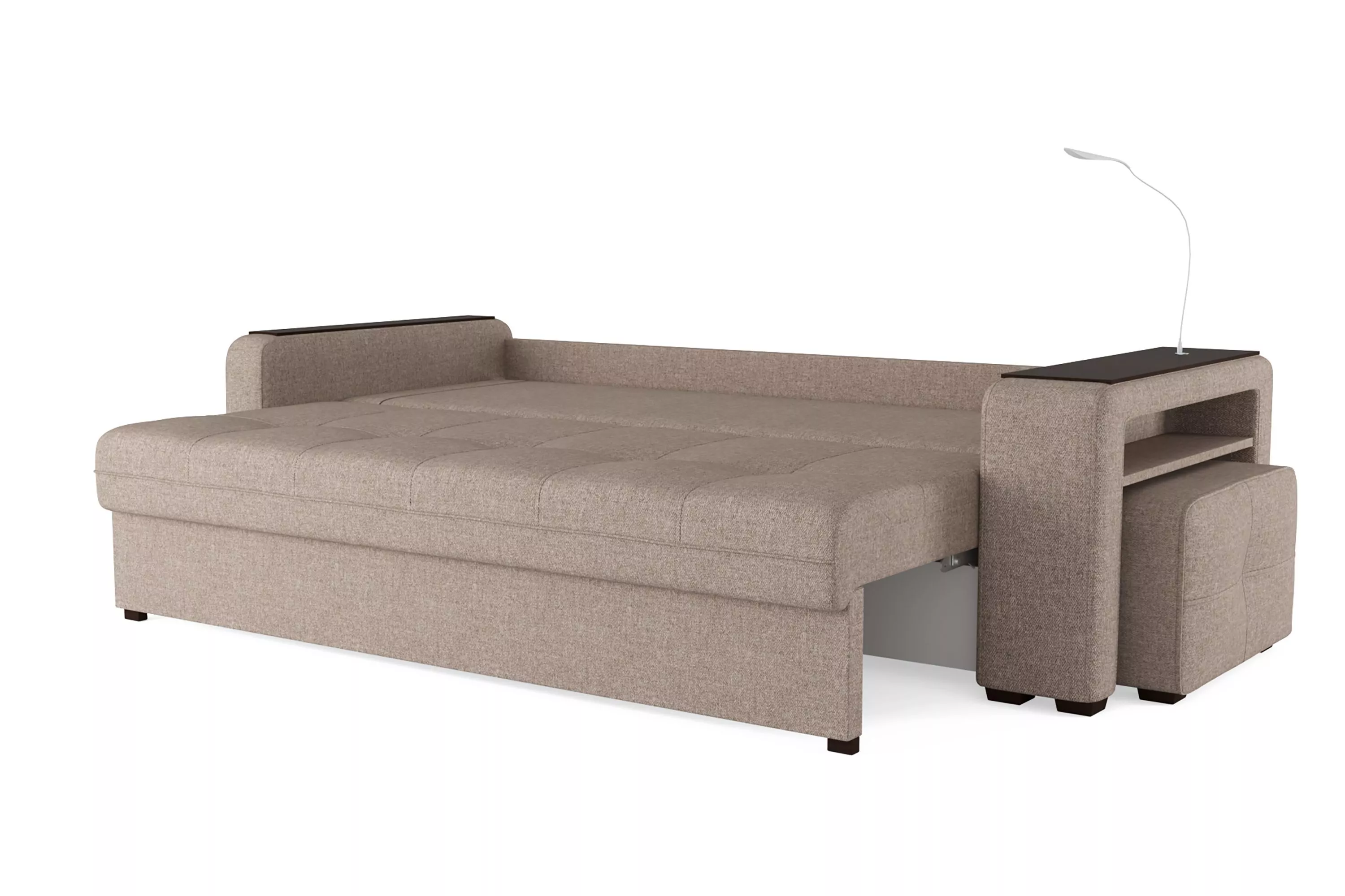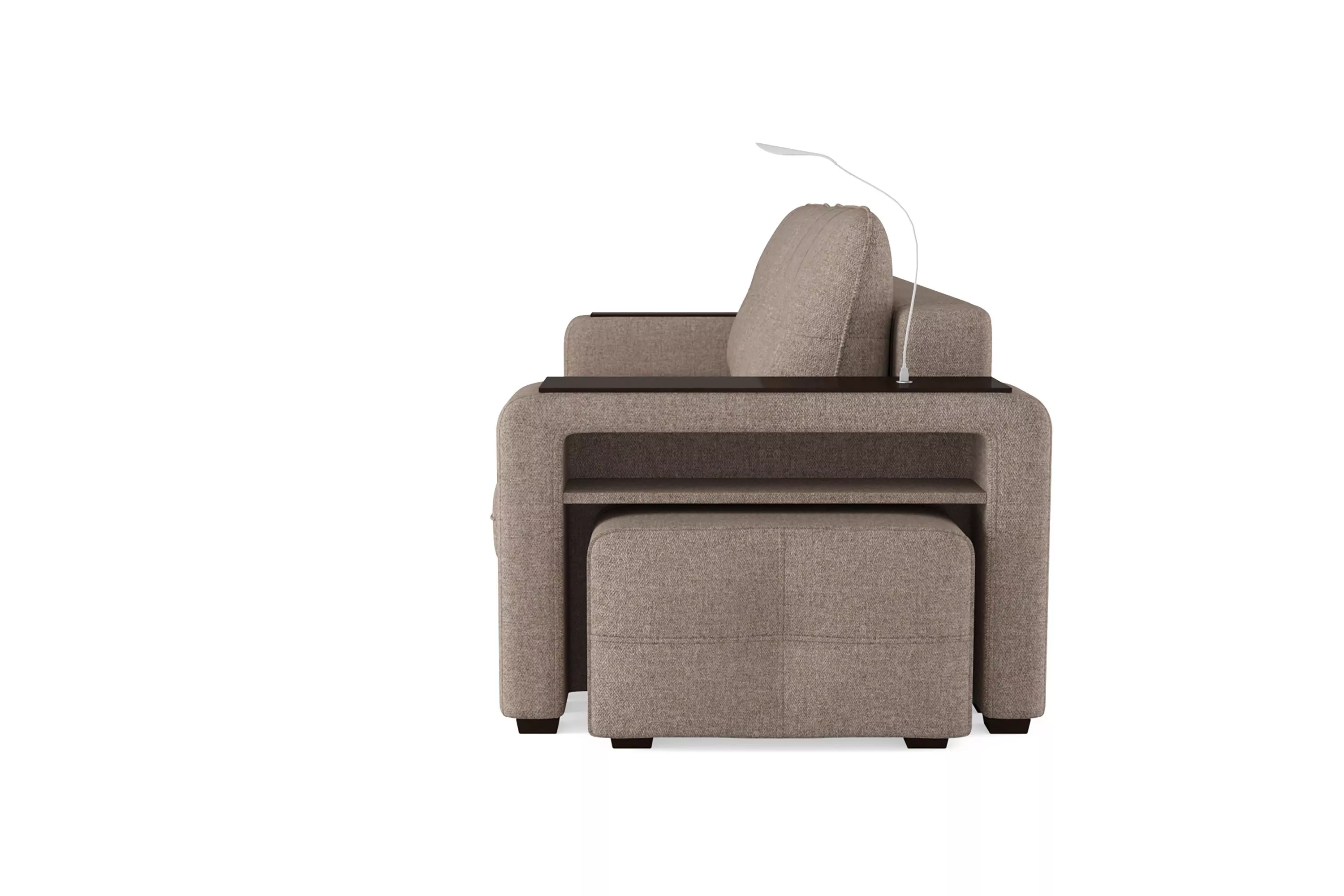 Диван SMART 4 — это не просто мягкая мебель, а один из ключевых элементов интерьера с обширным функционалом, где эстетика тесно соседствует с комфортом и эргономичностью. Одна боковина оснащена карманом для хранения мелочей и гаджетов, другая совмещает одновременно рабочую поверхность за счет широкой накладки, двойной usb-порт и портативную лампу точечного света, которая входит в комплект.Добавить контрастных деталей в интерьер поможет пуф, интегрированный в подлокотник. Этот вариант для современных людей, которые ценят комфорт и удобство отдыха. Мягкое сиденье с легкостью трансформируется в просторное спальное место, на котором смогут утроиться ваши гости. Стильный и уютный, он станет отличным решением, если вы ищите не только красоту, но и комфорт.