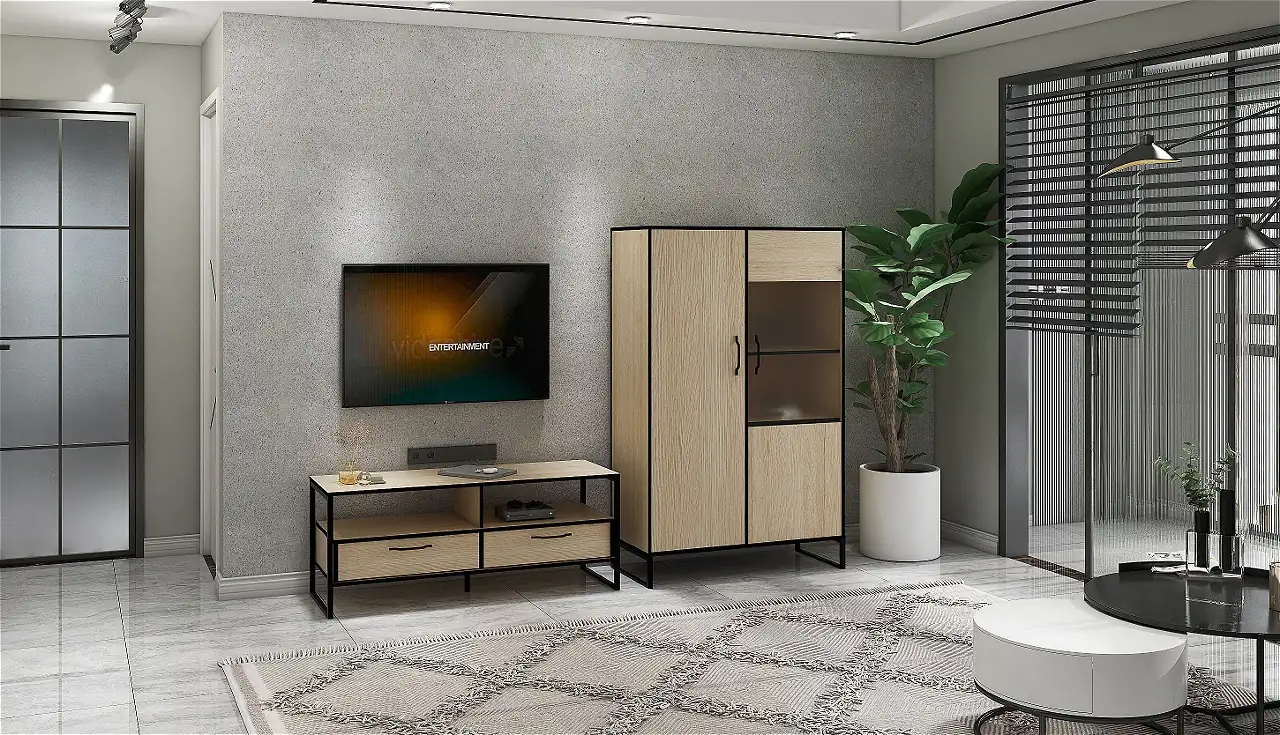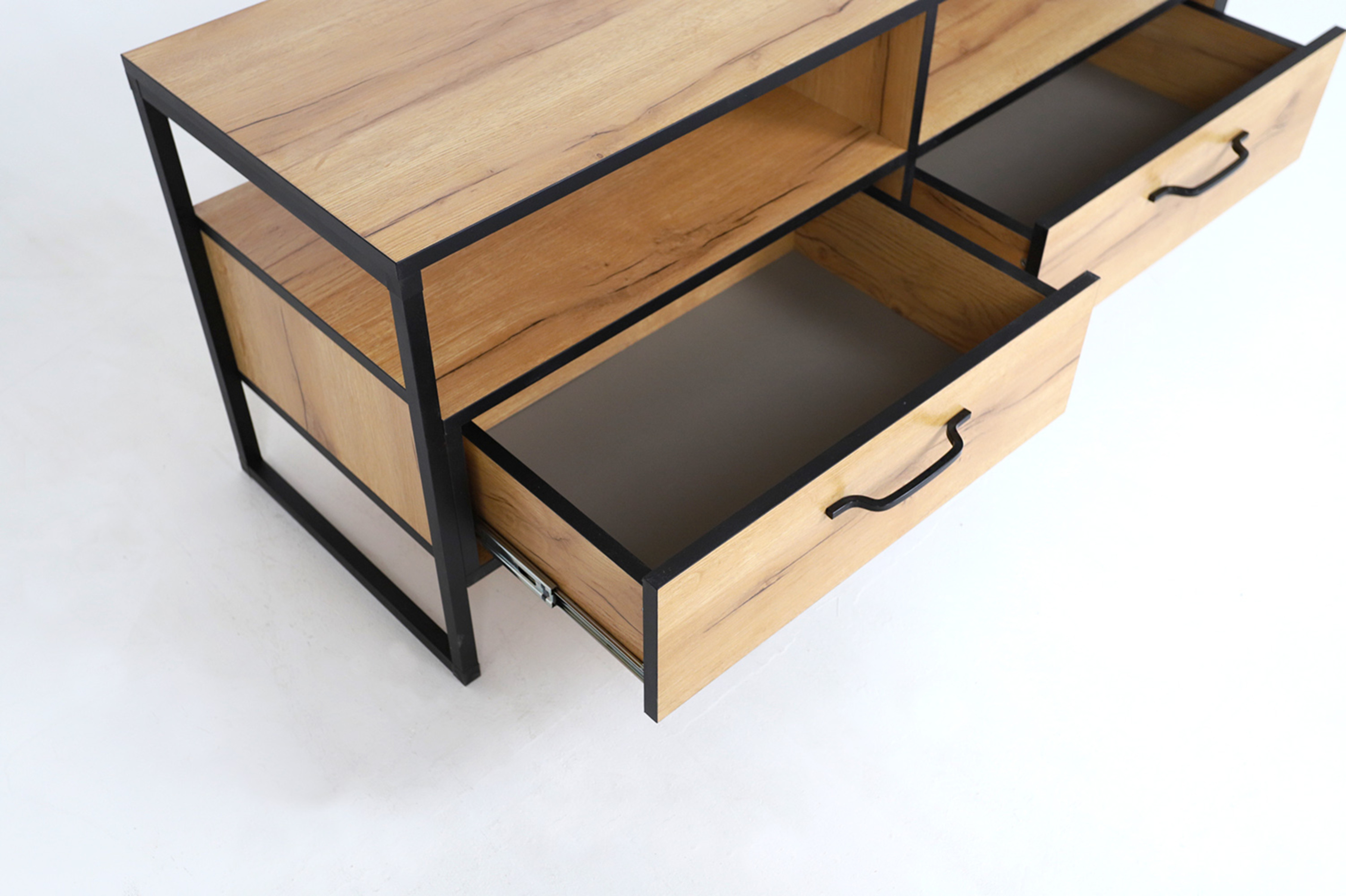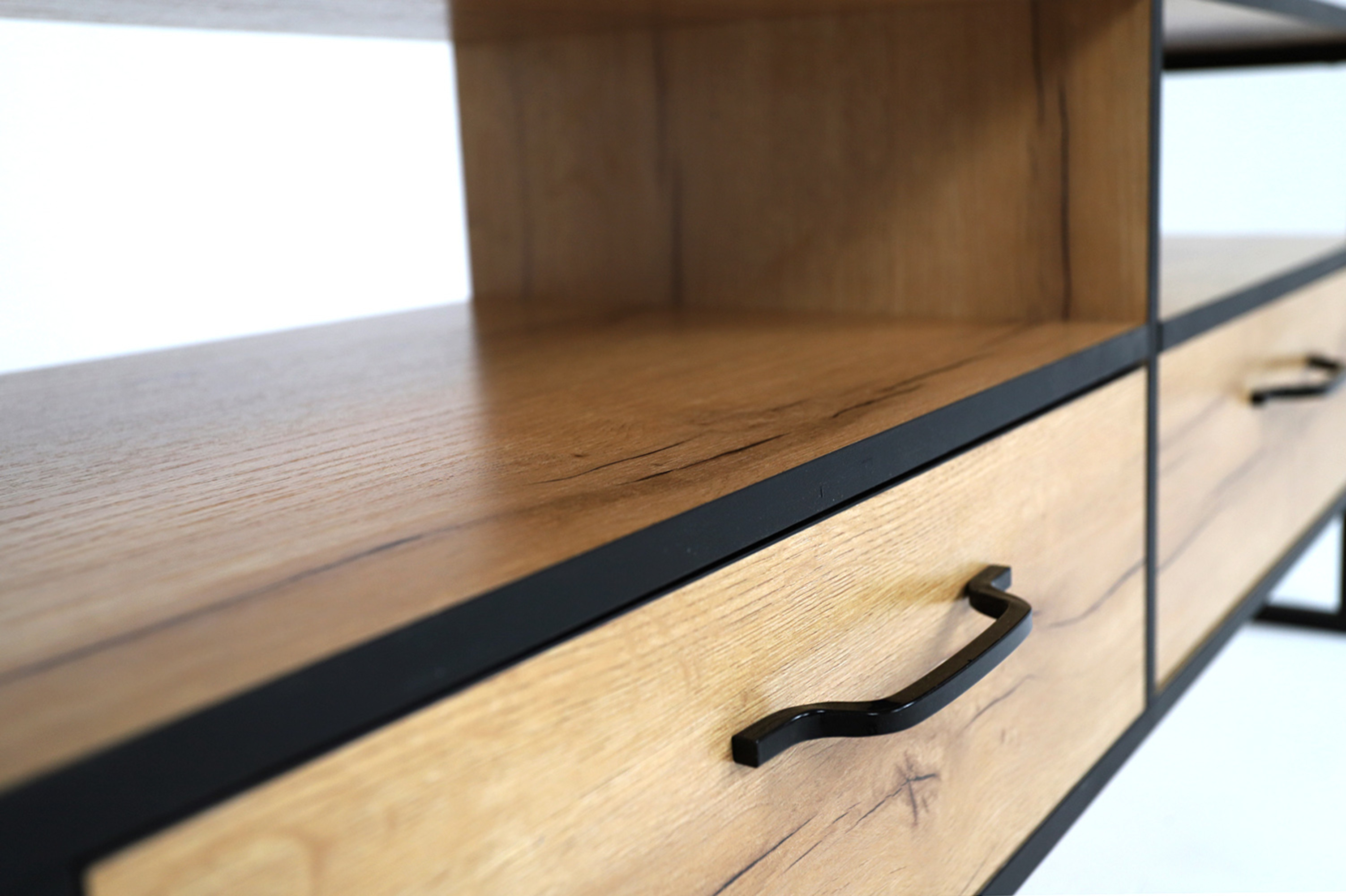 Стильная и функциональная ТВ-тумба на металлических ножках с просторными выдвижными ящиками и полками — идеальное дополнение для вашей гостиной. Ее современный дизайн и надежная конструкция добавят нотку элегантности и современности в ваш интерьер.Габариты: