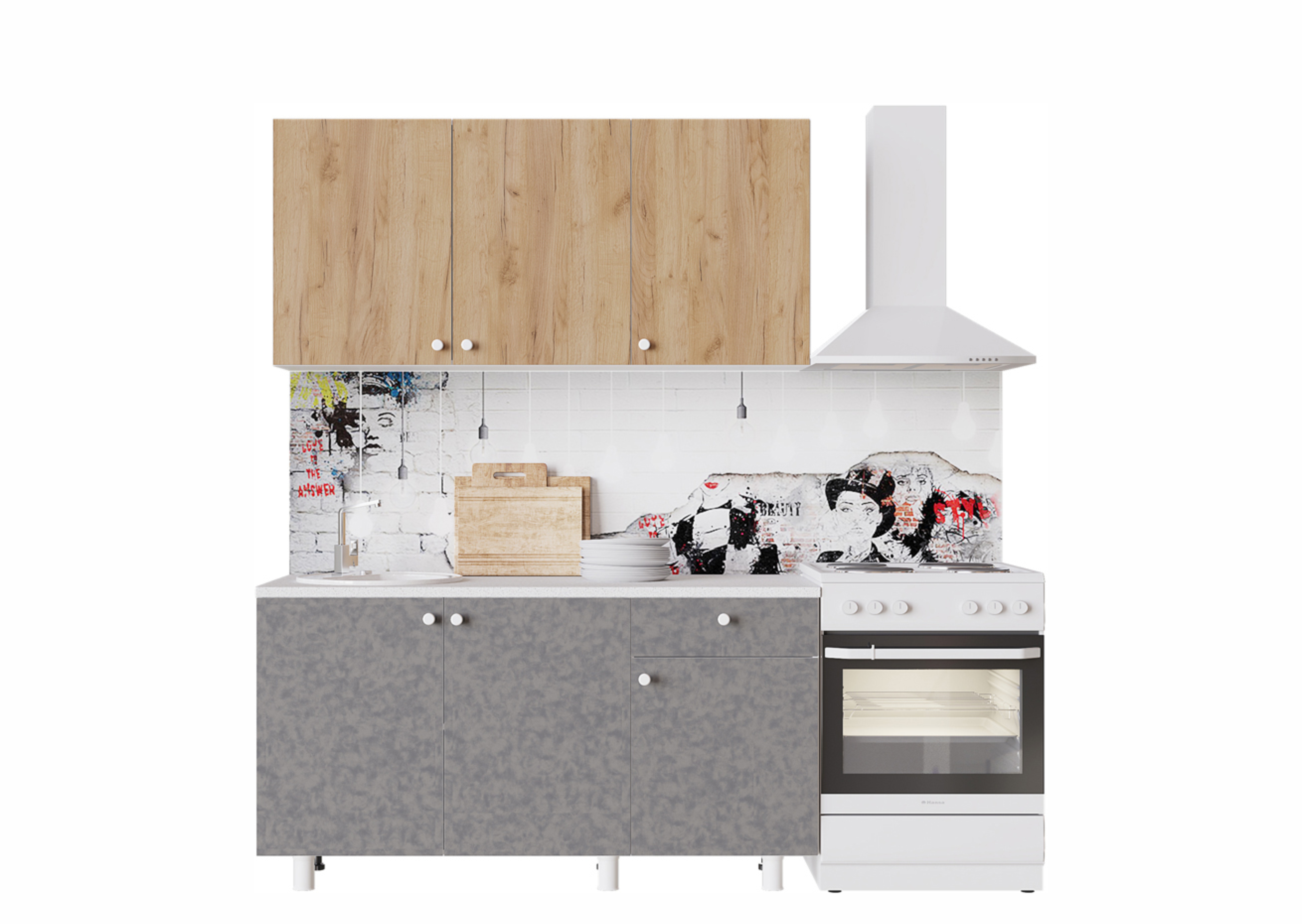 Обратите внимание: кухонное оборудование, стеновая панель и предметы интерьера приобретаются отдельно. Увеличивайте размер кухни, комбинируя наборы и получая варианты: POINT 200, 220, 240, 250, 270, 300 и т.д. (путем суммирования размеров).