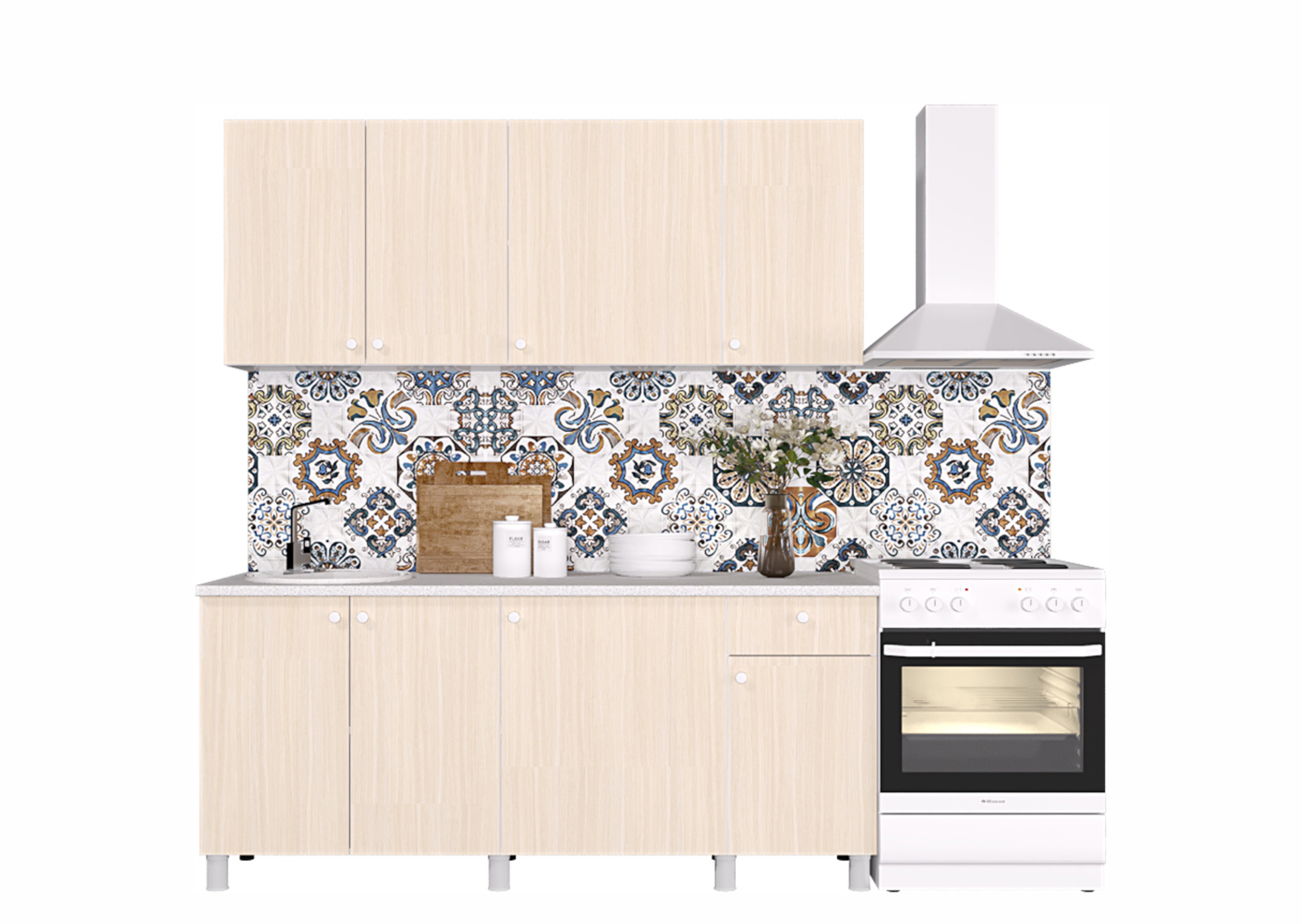 Обратите внимание: кухонное оборудование, стеновая панель и предметы интерьера приобретаются отдельно. Увеличивайте размер кухни, комбинируя наборы и получая варианты: POINT 200, 220, 240, 250, 270, 300 и т.д. (путем суммирования размеров).