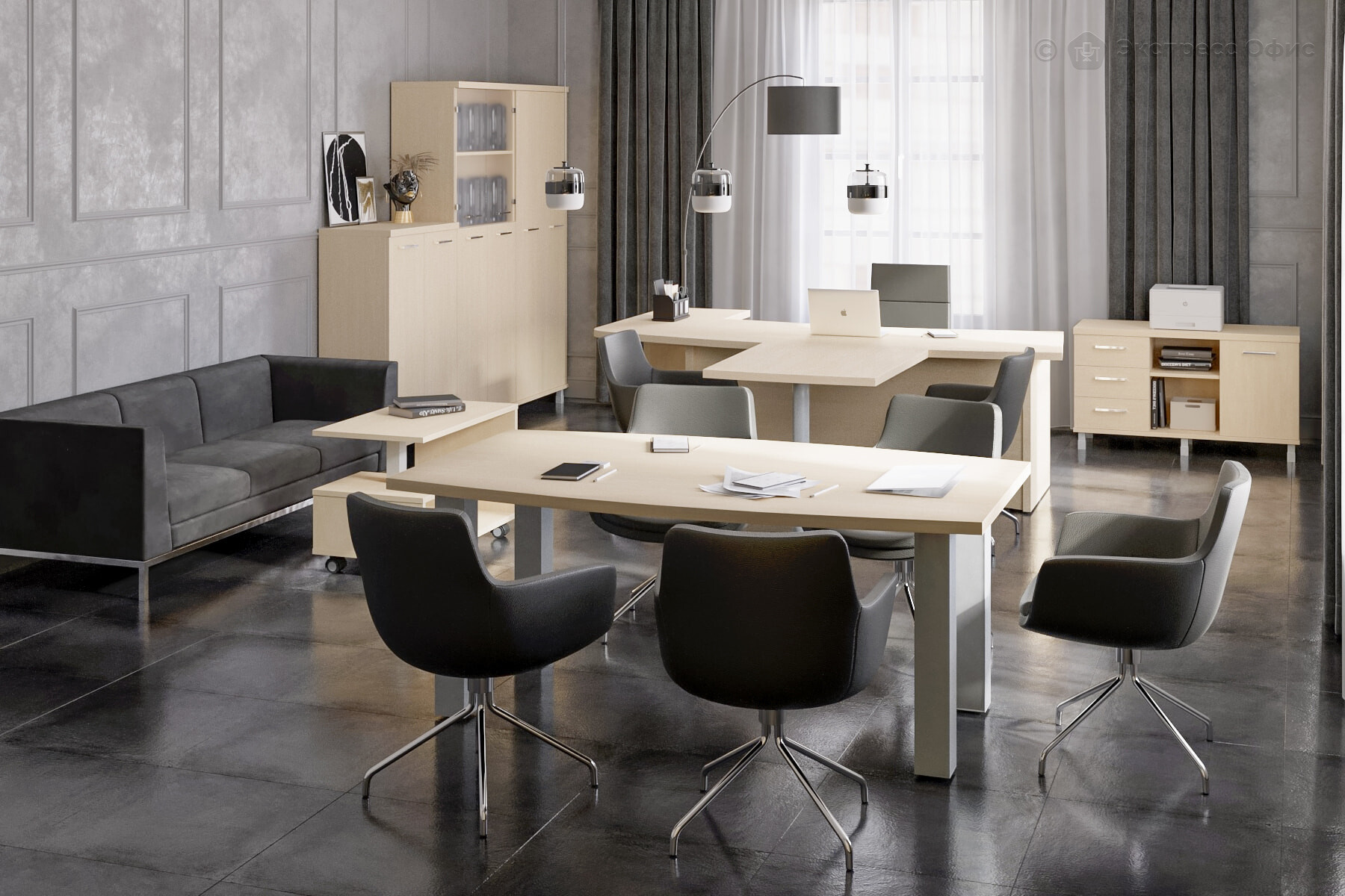 -Тумба для документов приставная правая, с топом First KTP-2 (R) Клен 1300 х 500 х 765-Стол для переговоров (с опорами) First KPRG-2 Клен 1800 х 1100 х 750