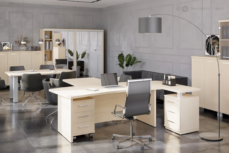 -Тумба для документов приставная правая, с топом First KTP-2 (R) Клен 1300 х 500 х 765-Стол для переговоров (с опорами) First KPRG-2 Клен 1800 х 1100 х 750