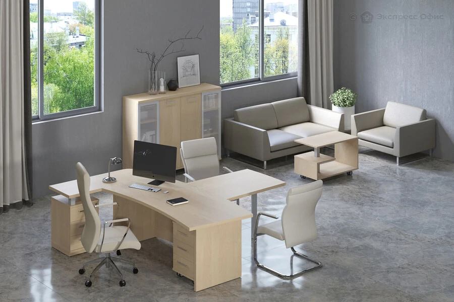 -First Стол руководителя KSR-2 Клен 1800*940*765-First Брифинг-приставка (опора в комплекте) KB-2 клен 900*900*765