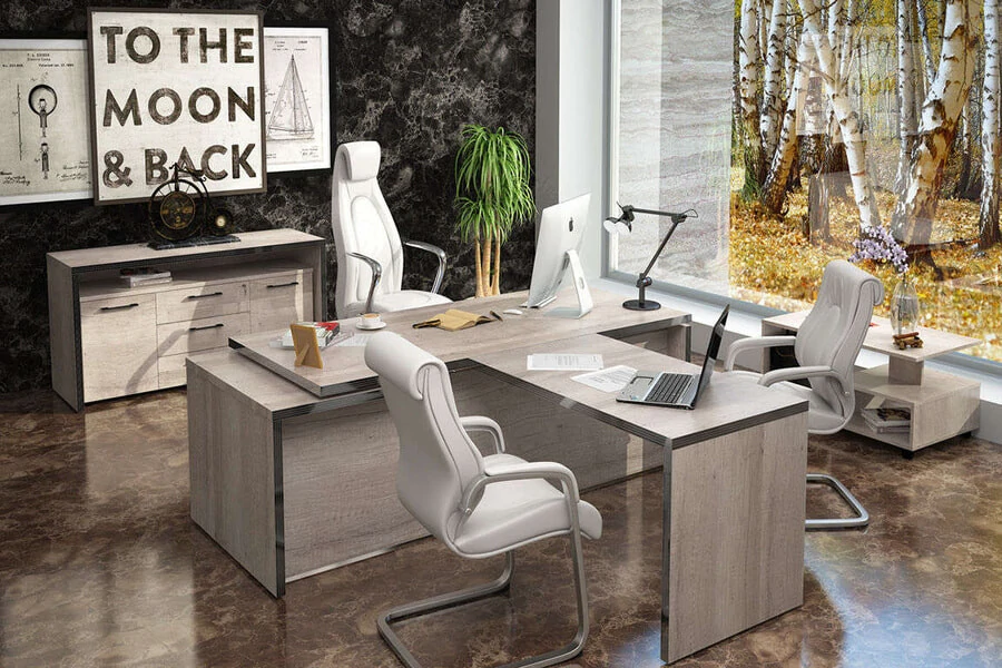 -Cтол руководителя TCT 189(R) дуб Каньон 1800х900х750 TORR-Брифинг-приставка TB 127 Дуб Каньон 1200х700х750 TORR