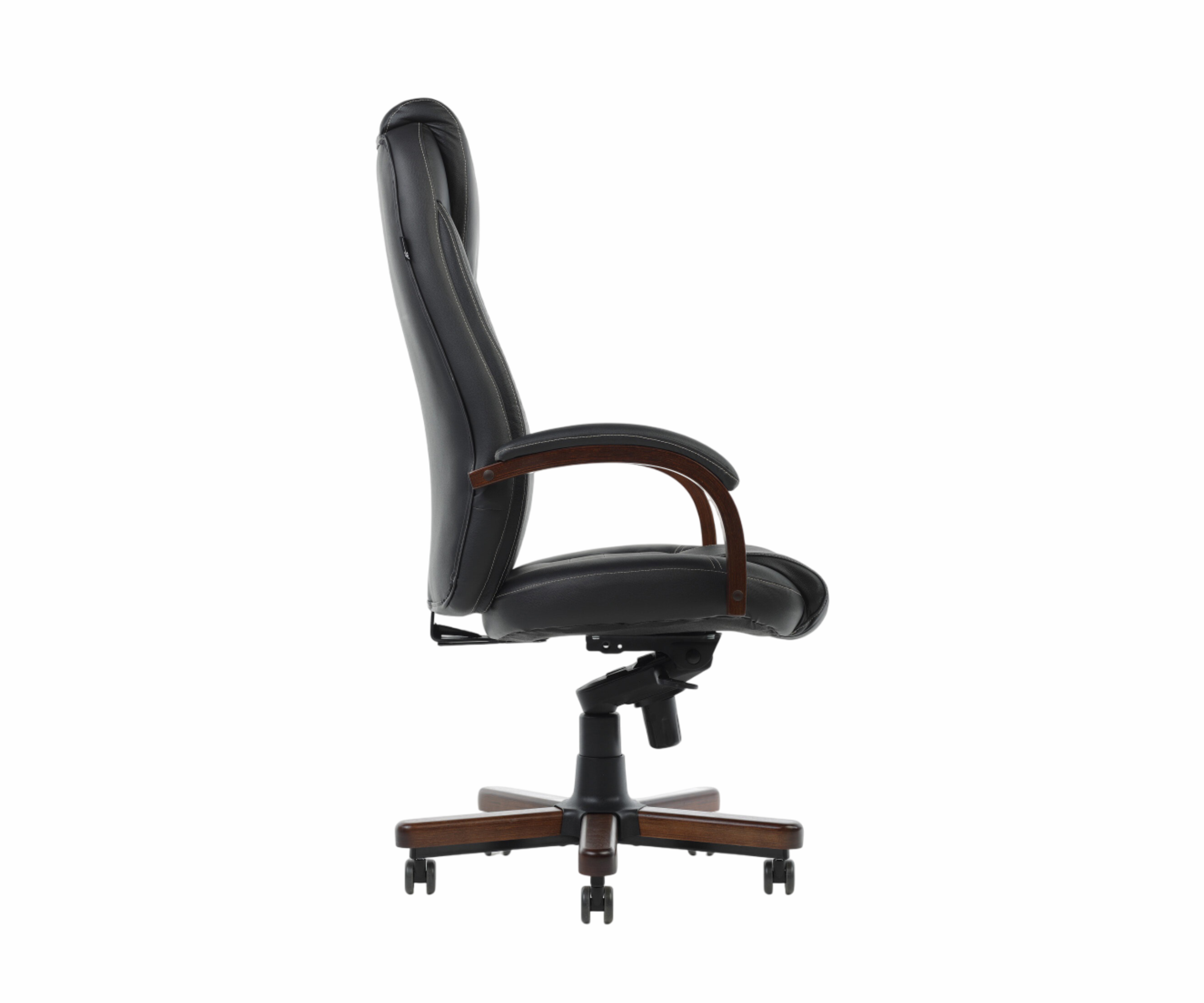 Бюрократ T-9923 Walnut кожа, цвет черный – классическое руководительское кресло, выполненное в стилизации под дерево. Каркас немонолитный, подлокотники выполнены из дерева, имеют мягкие накладки, крестовина опоры металлическая, задекорирована деревом. Сиденье и спинка выполнены из кожи черного цвета. Снаружи для спинки использована кожа с компаньоном. Спинка высокая, в конструкции предусмотрен подголовник и система качания с механизмом мультиблок. Кресло регулируется по высоте. Максимально допустимая нагрузка 200 кг.Габариты: