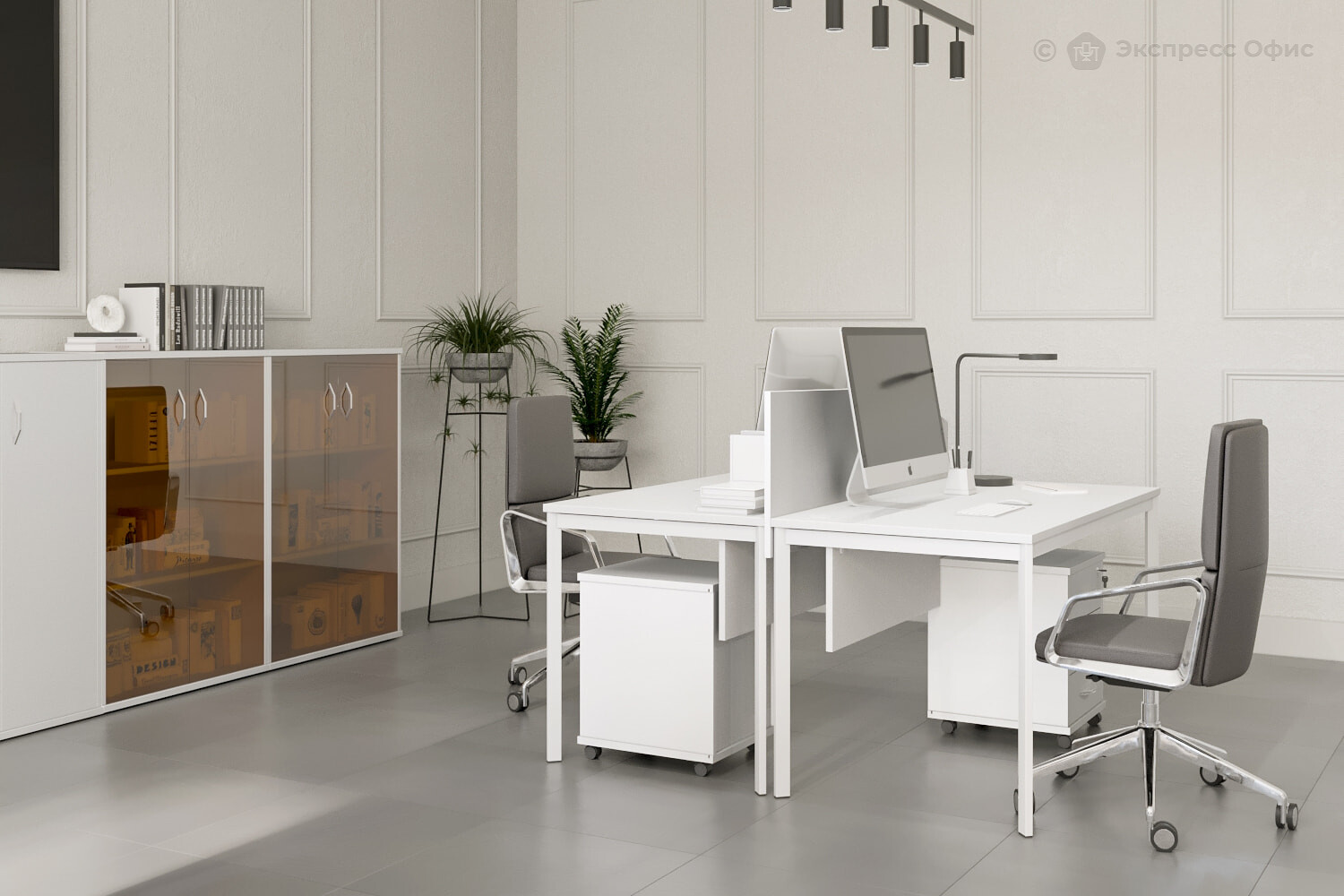 -Настольный экран Имаго ЭКР-3 Белый (1400 х 18 х 450) - 1 шт-Шкаф для документов Имаго СТ-2.4 Белый (770 х 365 х 1200 мм) - 2 шт