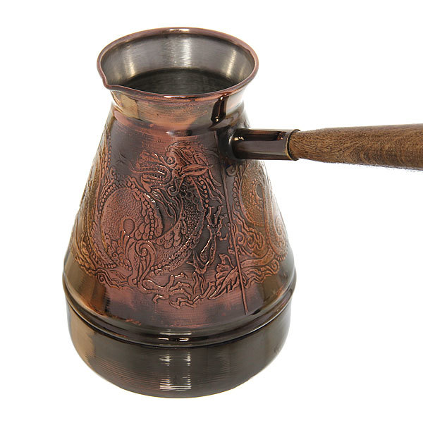 Турка медная 600 гр "Дракон"Турка для варки кофе изготовлена из меди с добавлением латуни.