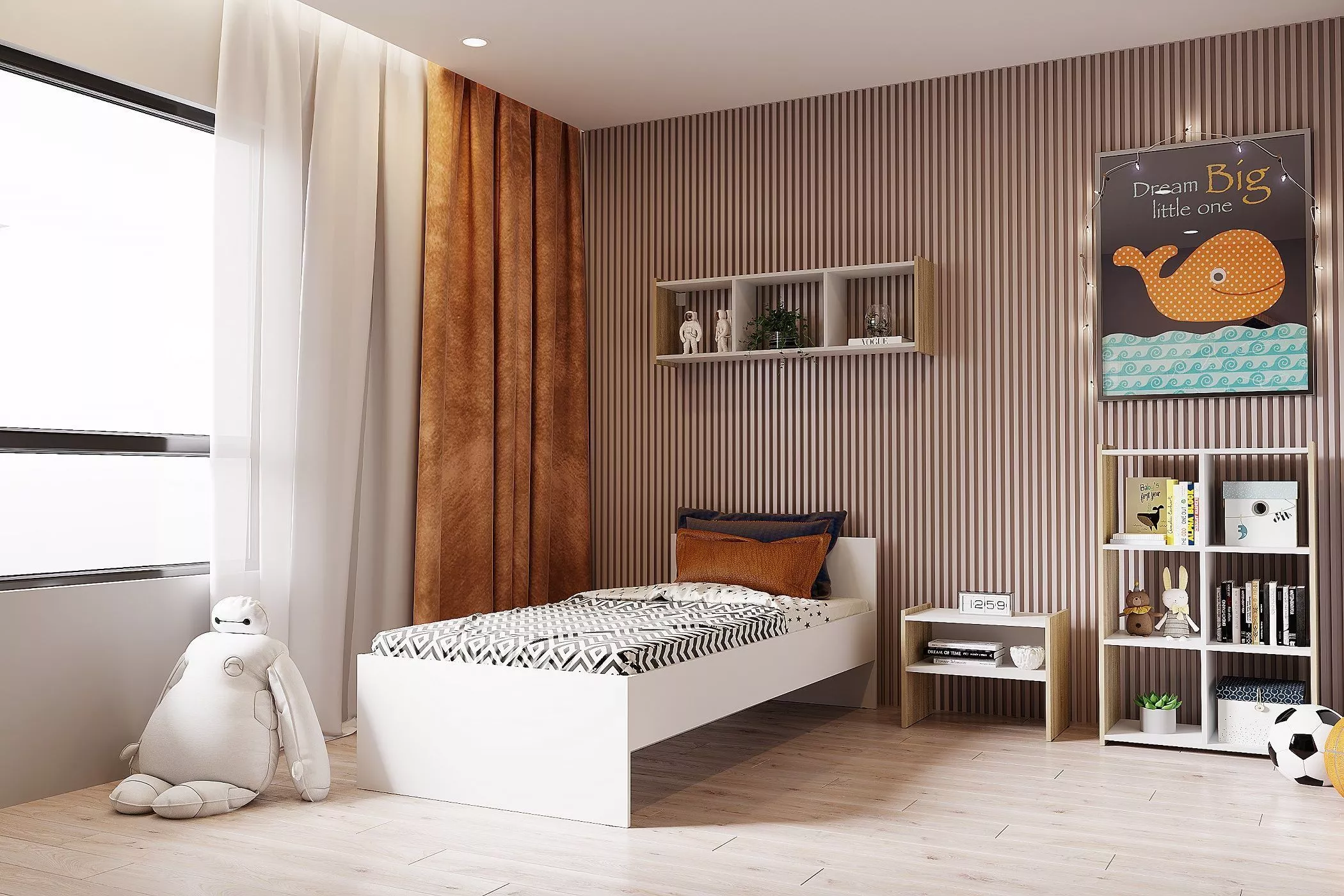 Кровати Симпл минималистичного исполнения в скандинавском стиле - свежий, современный и лаконичный выбор. Модель идеально подойдет для тех, кто ценит каждый сантиметр пространства. Благодаря выбору из двух вариантов цвета ЛДСП: Белый и Дуб Сонома, можно придать индивидуальность интерьеру детской или спальни.Ровное и жесткое основание из панелей ЛДСП полезно для профилактики некоторых заболеваний позвоночника. Такое основание также усиливает эффект «памяти» и «погружения» при использовании беспружинных моделей матрасов.