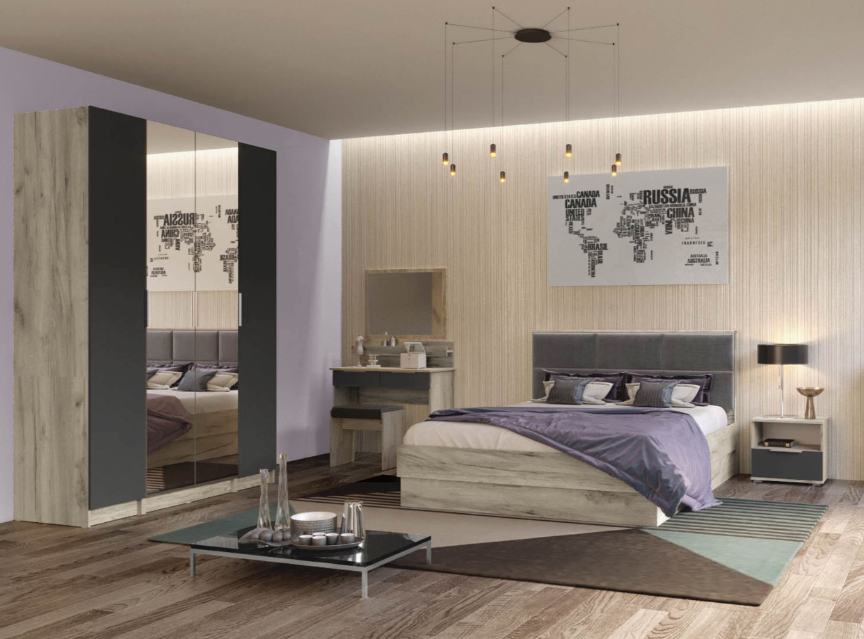 Спальный гарнитур "Венеция" изготовлен в ультра модной цветовой гамме Дуб Серый Крафт и Серый Графит. Этот спальный гарнитур будем жемчужиной вашей спальни и будет вас радовать еще множество лет.Цвет корпуса/фасада