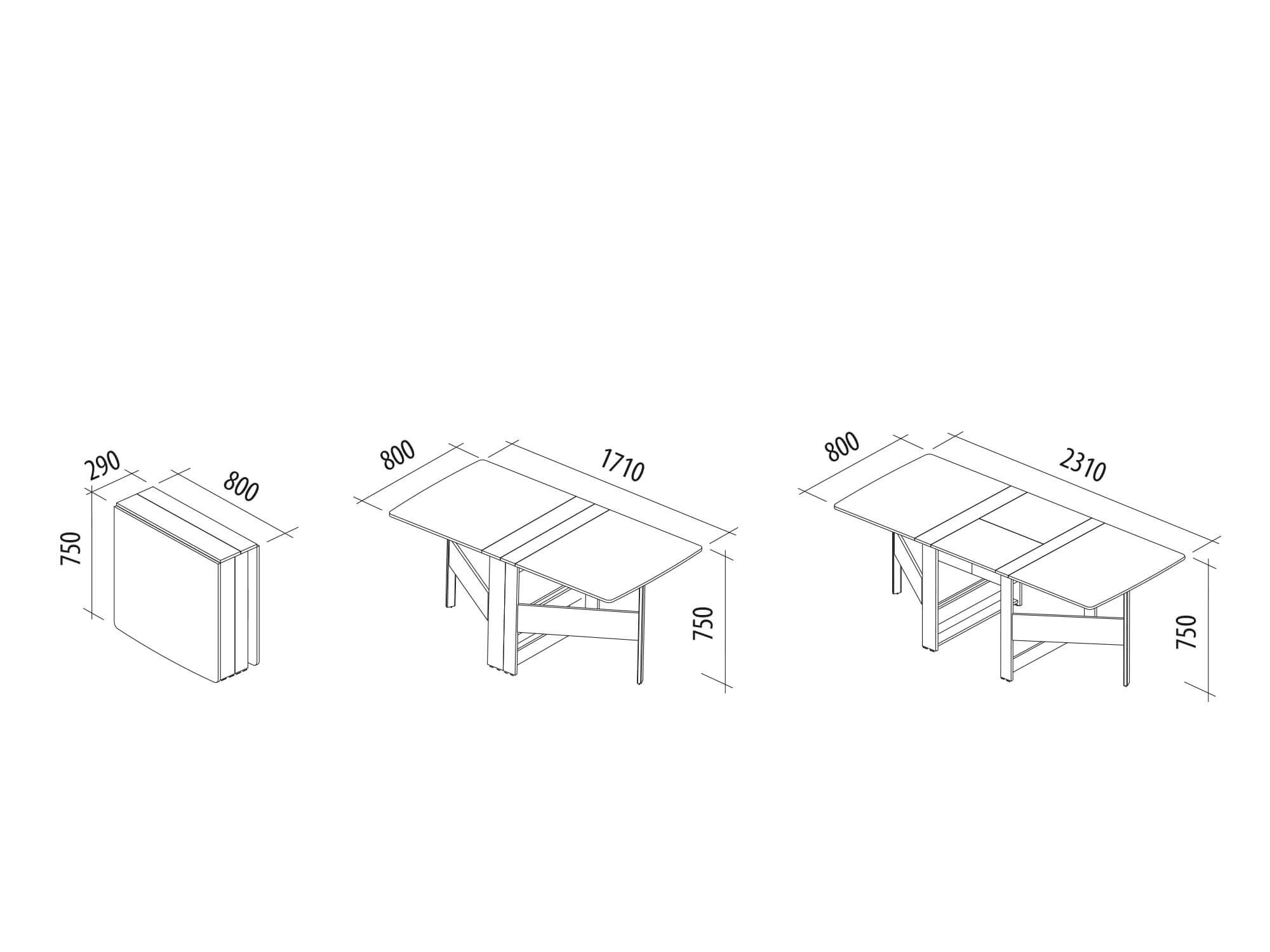 - в разложенном виде размер столешницы составляет 171х80 см (без использования внутренней части) и 231х80 см (с внутренней частью).