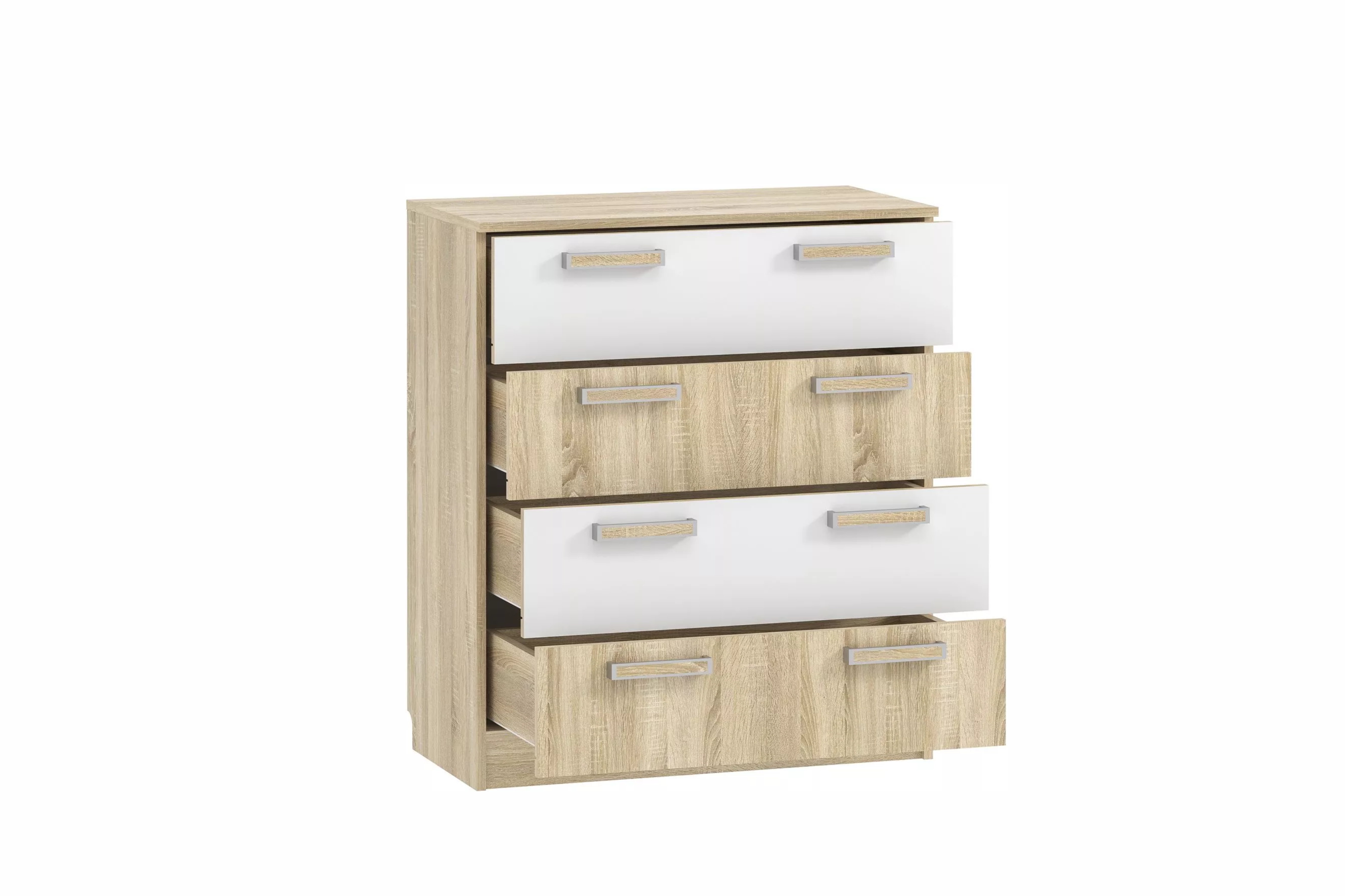 Комод «Фанк» - идеально подходит для обустройства комнаты подростка. Светлые тона мебели, выдержанный стиль прекрасно смотрятся в любом интерьере. Четыре удобных выдвижных ящика – это огромный объем для хранения белья, предметов одежды и аксессуаров. Выдвижные ящики оснащены шариковыми направляющими полного выдвижения, равномерно распределяют вес содержимого и обеспечивают плавный бесшумный ход ящика. Комод отлично сочетается с другими моделями коллекции «Фанк».Цвет